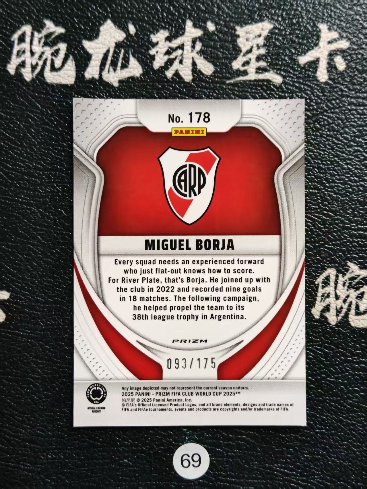 2025 【腕龙拍卖 接代卖】 腕龙夏总AP4 Panini Prizm 世俱杯 PZ 米格尔 博尔哈 河床 蓝碎冰折 93/175编 MIGUEL BORJA 卡品如图 收藏必备