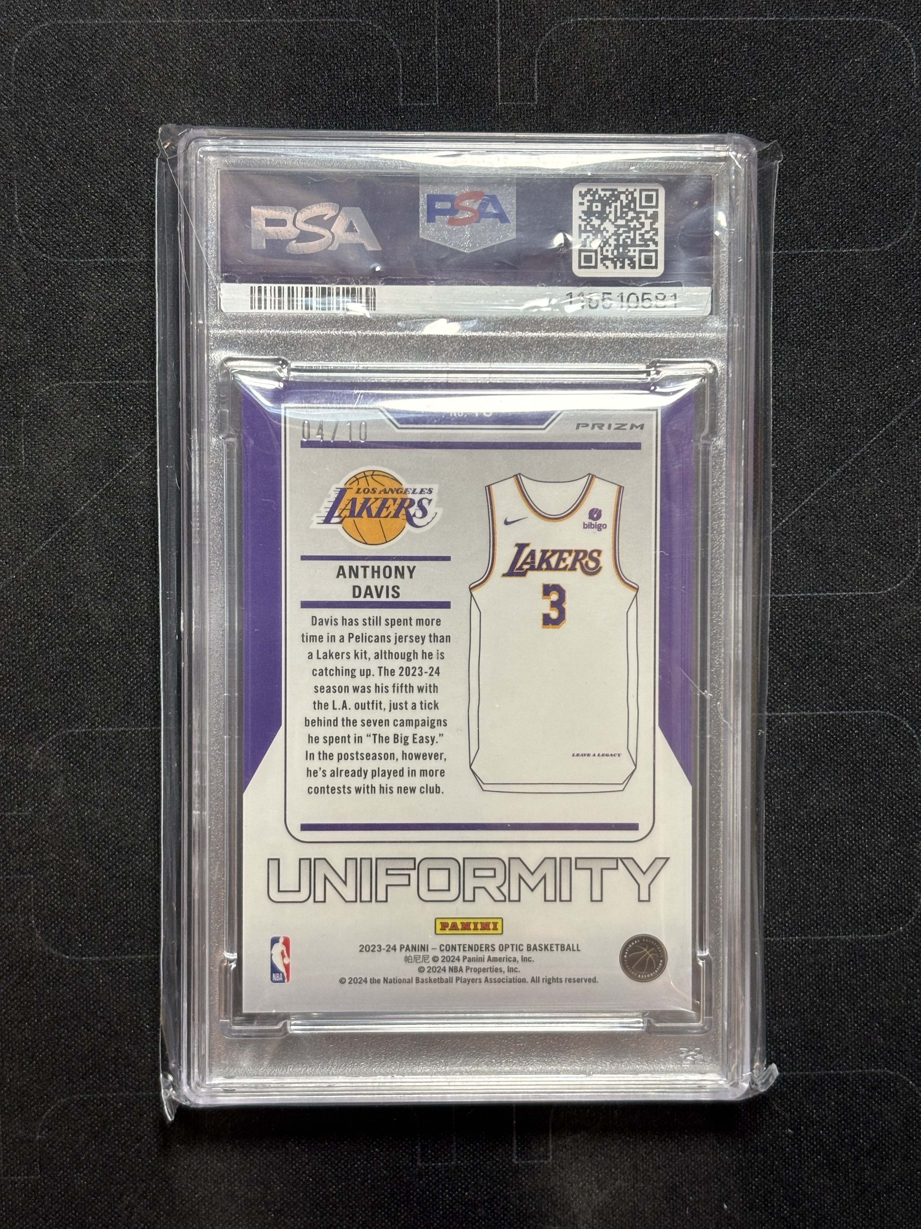 2023-24 Panini Contenders Optic Anthony Davis 【香山拍卖】湖人 总冠军功臣 浓眉 安东尼戴维斯 小背心 金折 04/10编 PSA8分 POP1 收藏佳品