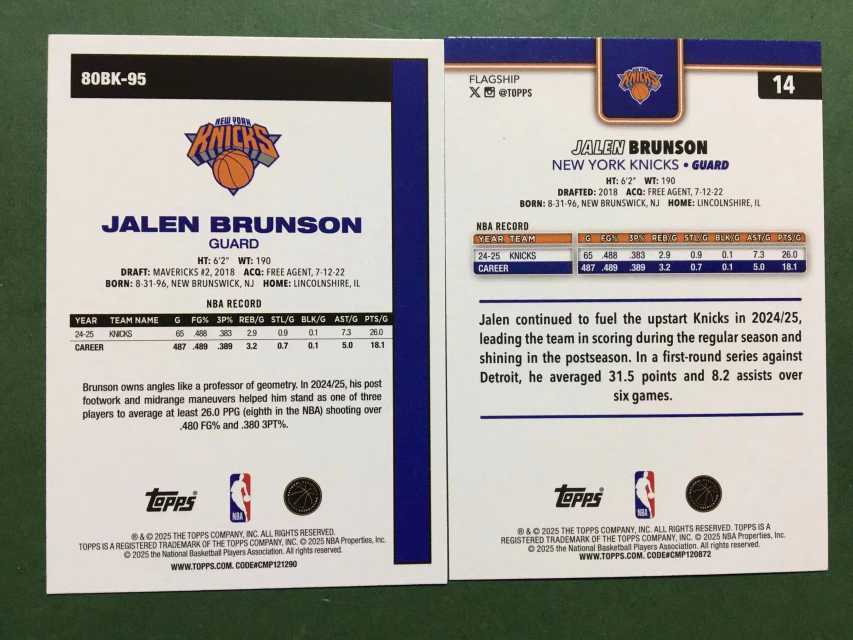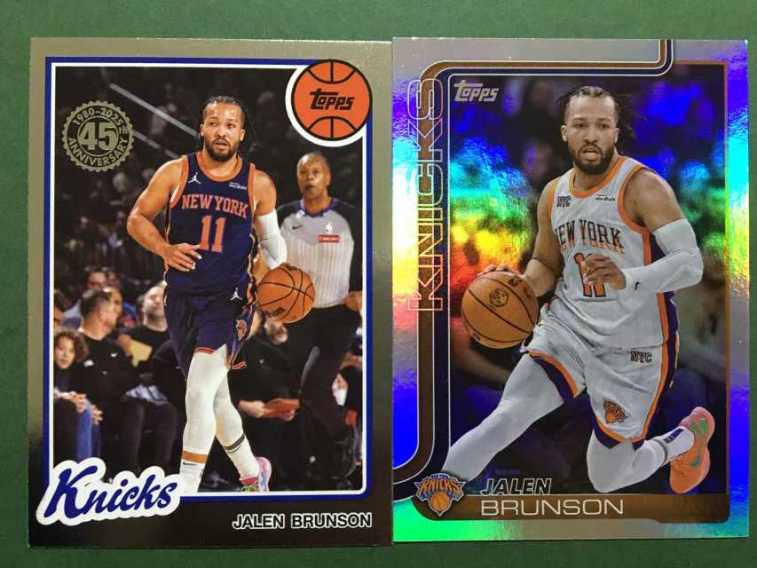 2025 Topps Flagship Jalen Brunson 尼克斯 贾伦 布伦森 大头 银折 折射 45周年复古base 全明星后卫 唐斯 布里奇斯队友 2张lot 专收必备 不保卡品#冯