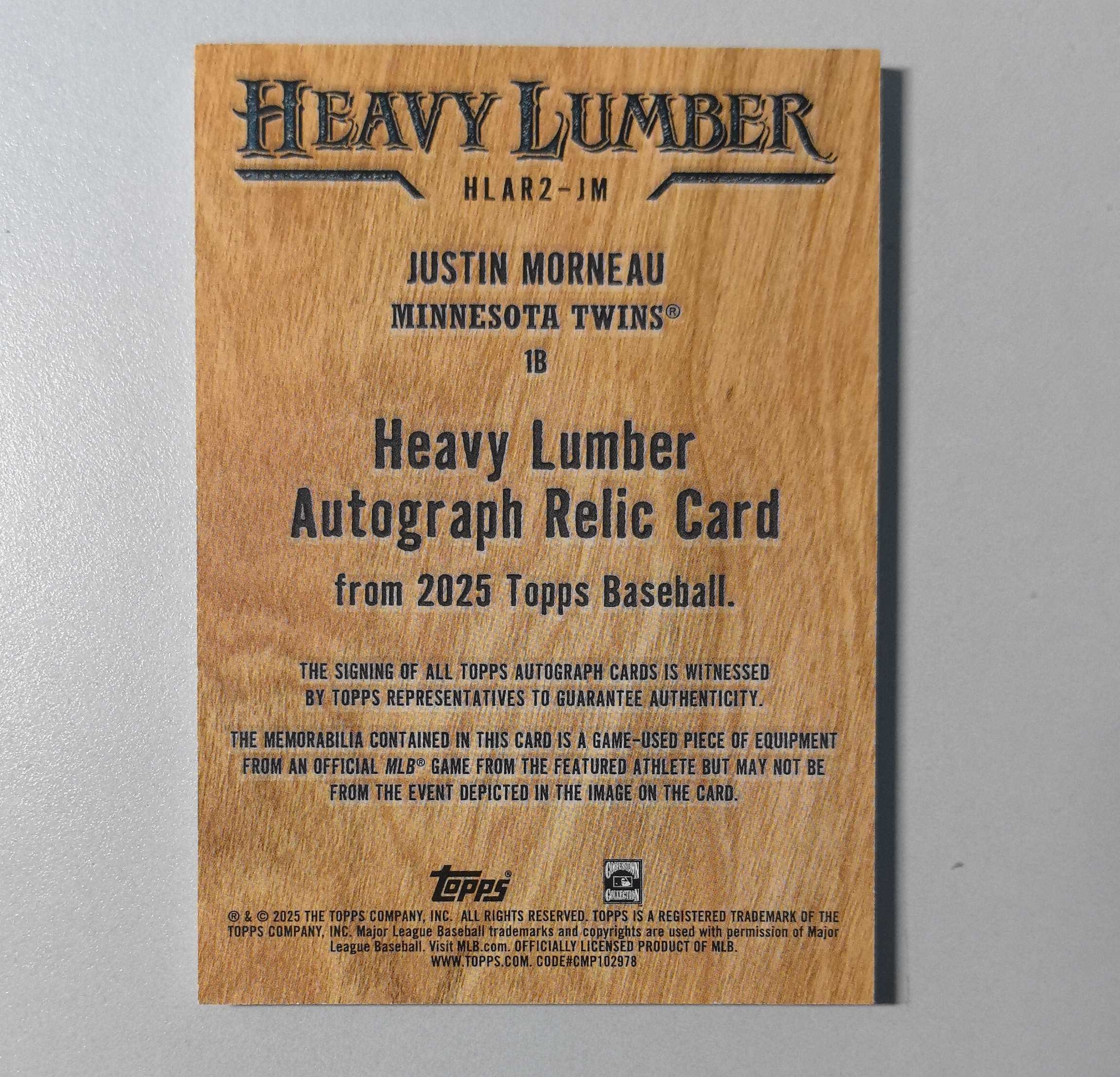 2025 Topps 【锡安代卖】 累计照常 棒球mlb series update 大比例ssp木棒实物签字卡签 明尼苏达双城传奇巨星 Justin Morneau 卡品如图 飞机盒