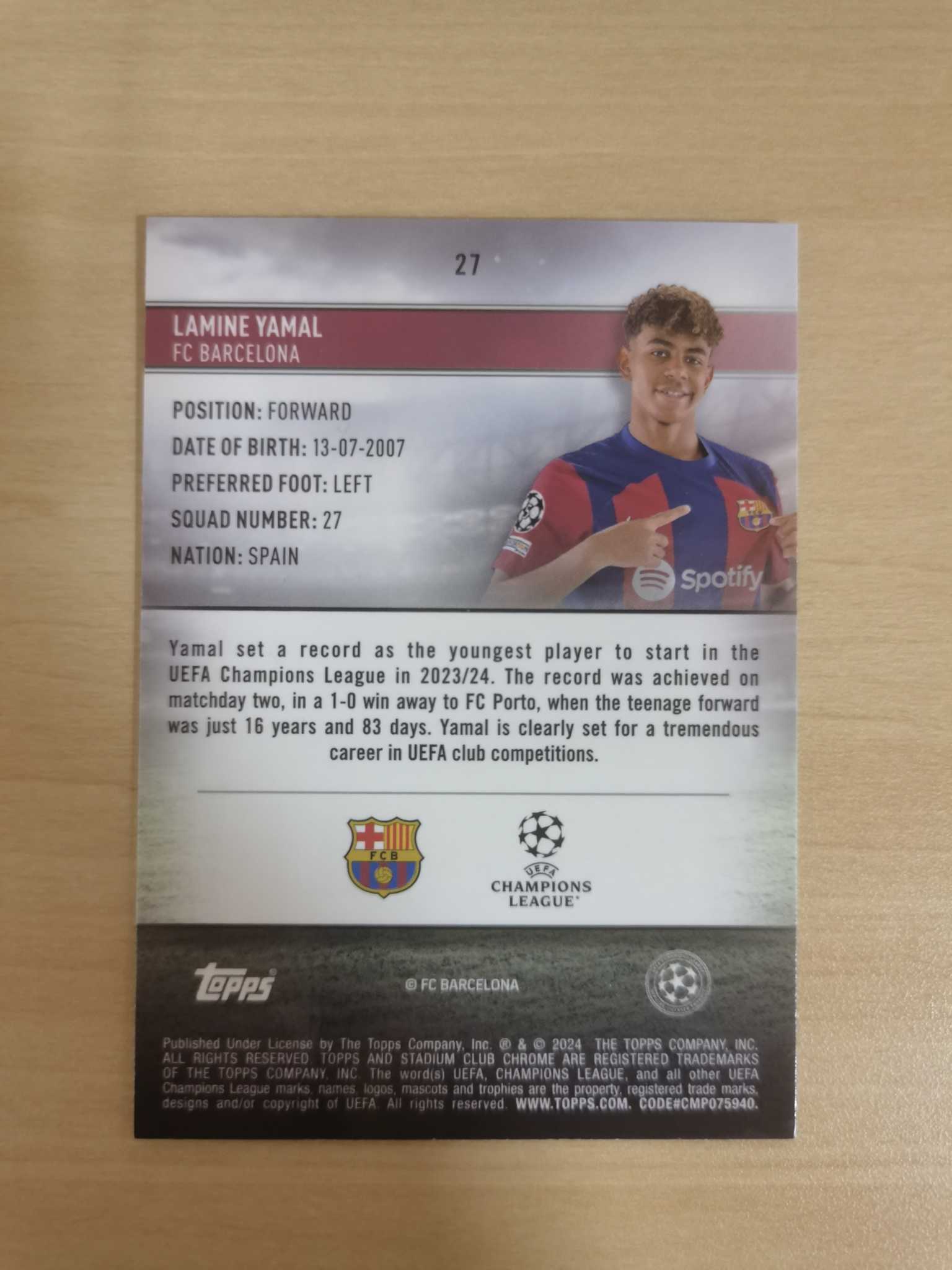 2024 Topps Stadium Club Chrome Lamine Yamal 欧冠 竞技场 巴萨 巴塞罗那 拉明 亚马尔 西班牙 新秀 rc base 超新星 未来必涨 收藏必备