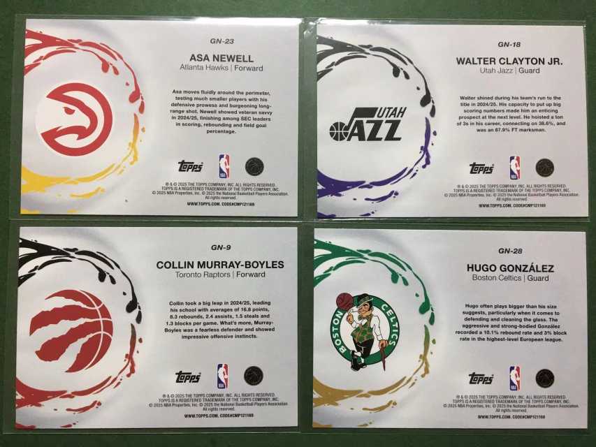 2025 Topps Flagship Collin Murray-Boyles RC 新秀 多队博伊尔斯  冈萨雷斯 阿萨 沃尔特 4张lot 新生代特卡 GENERATION now 不保卡品#纪