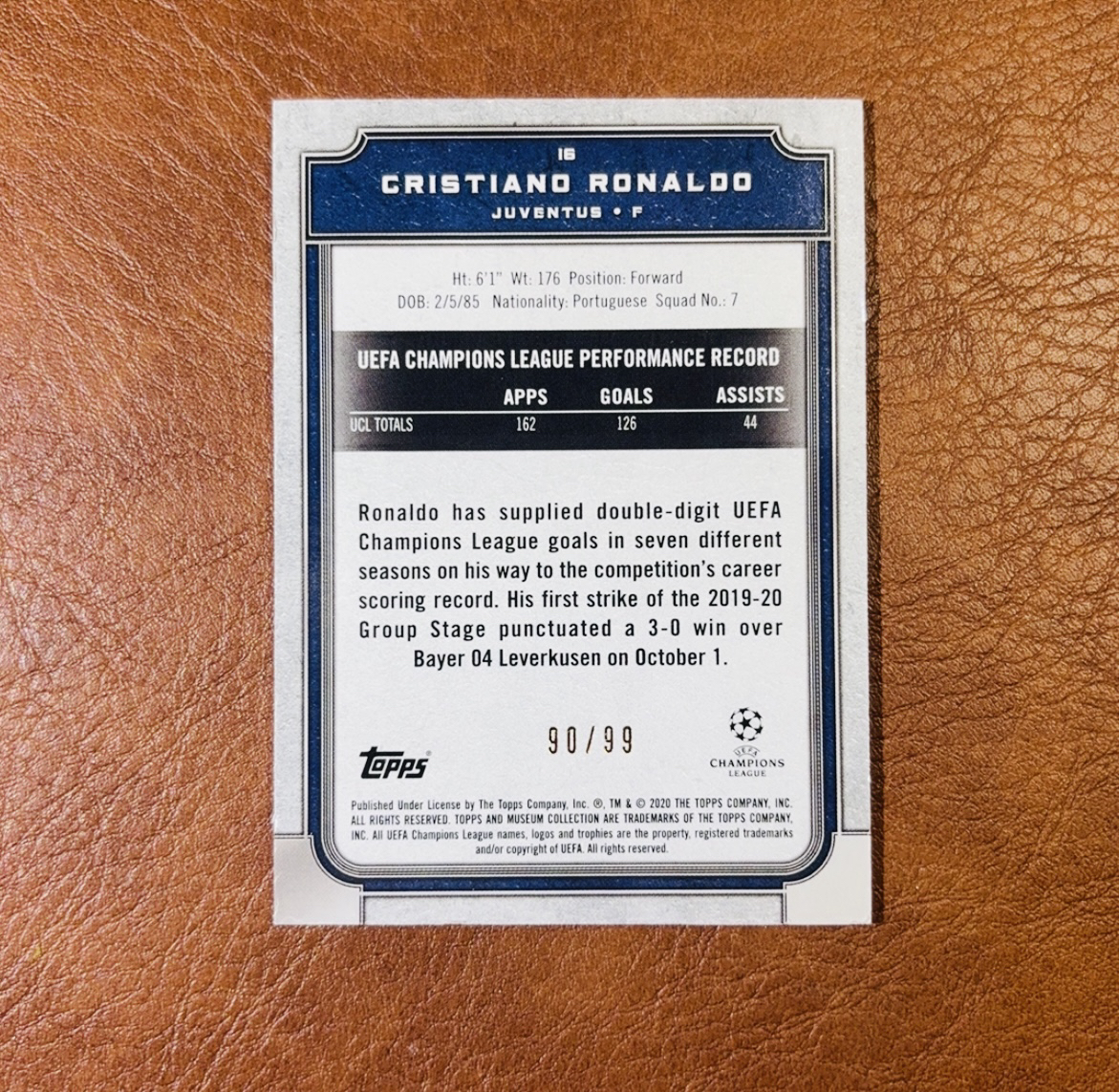 2019-20 Topps Museum Collection Cristiano Ronaldo 【耳朵拍卖】 MC博物馆藏品 C罗 罗纳尔多 总裁 尤文图斯 皇马 99编 收藏必入 瑕疵见图 EK