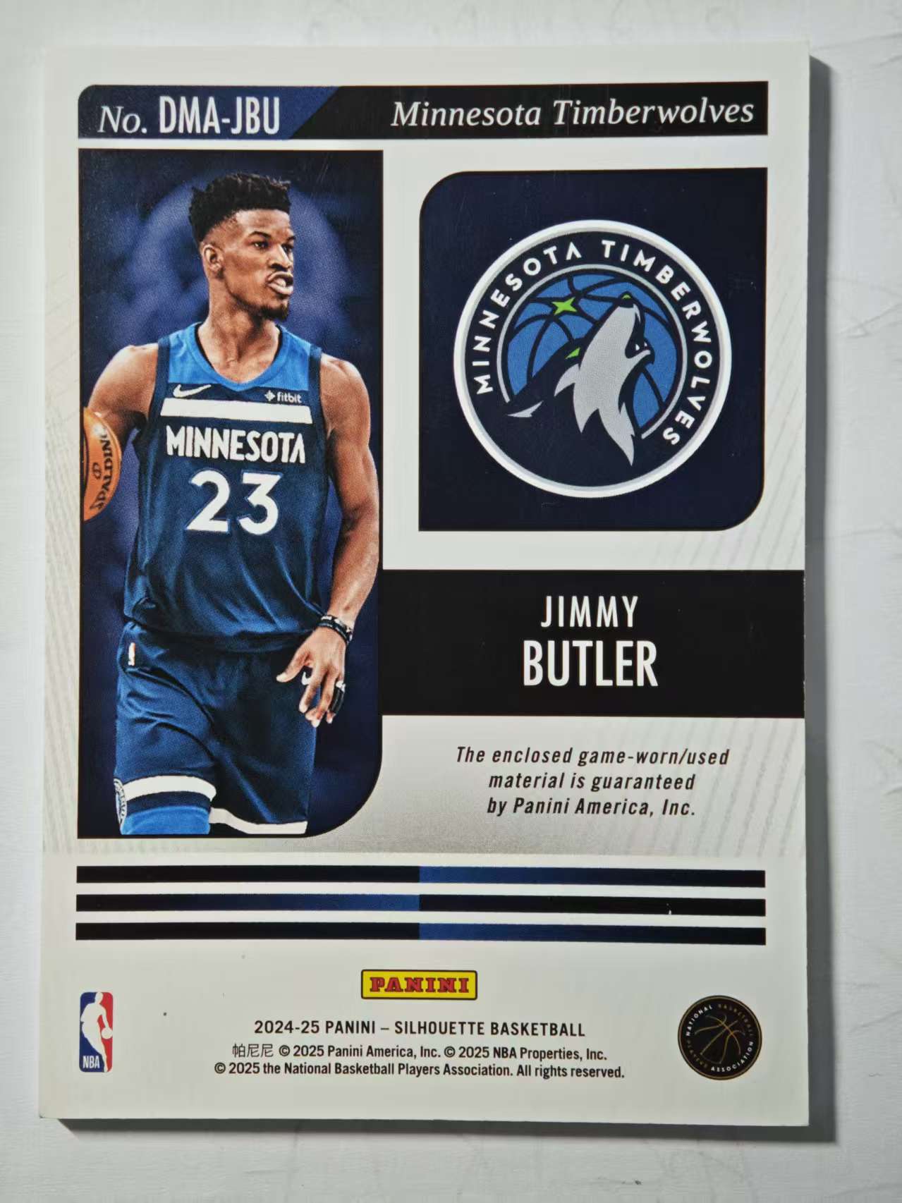 2024-25 Panini Silhouette Jimmy Butler III 剪影 吉米 巴特勒 PATCH 水洗标 TAG 暴力切割 森林狼 双窗落场球衣 物料 轻印
