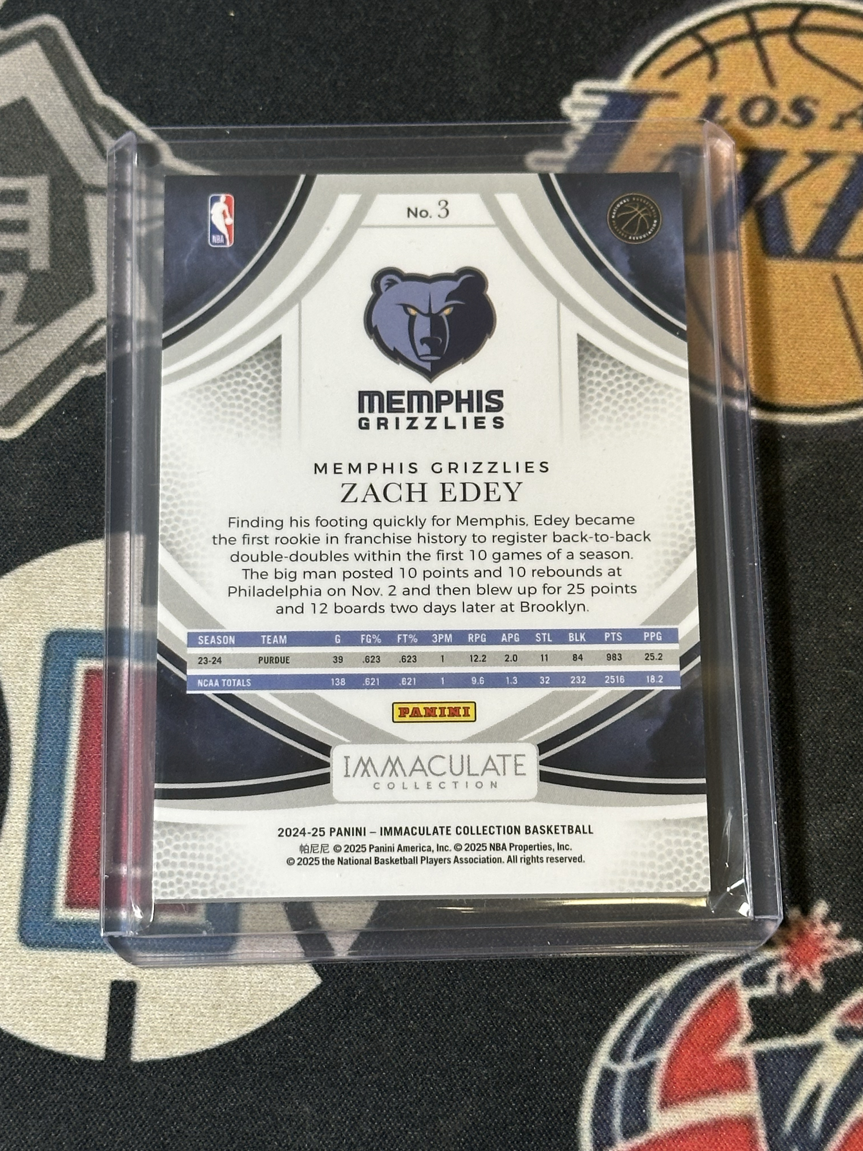 【预付85%卡迷联盟-yyy】2024-25 Panini Immaculate Zach Edey RC 红版 Base 灰熊 新秀 周志豪 扎克 伊迪 埃迪 13/49