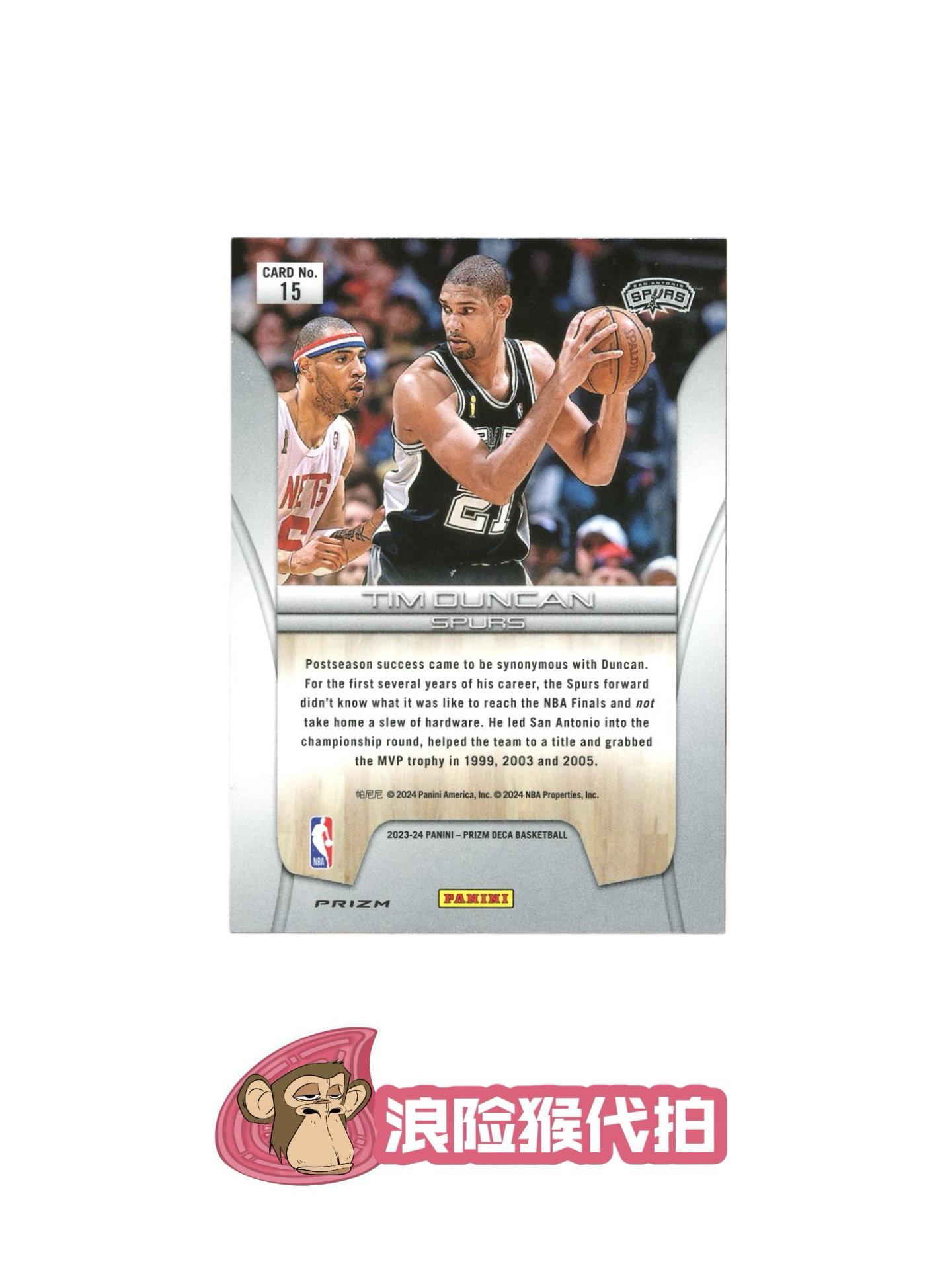 【浪险猴🐒代拍】2023-24 Panini Prizm Deca pz德卡 Tim Duncan 蒂姆 邓肯 石佛 马刺 Finalists 特卡 银折 收藏必备 卡品如图 黎明