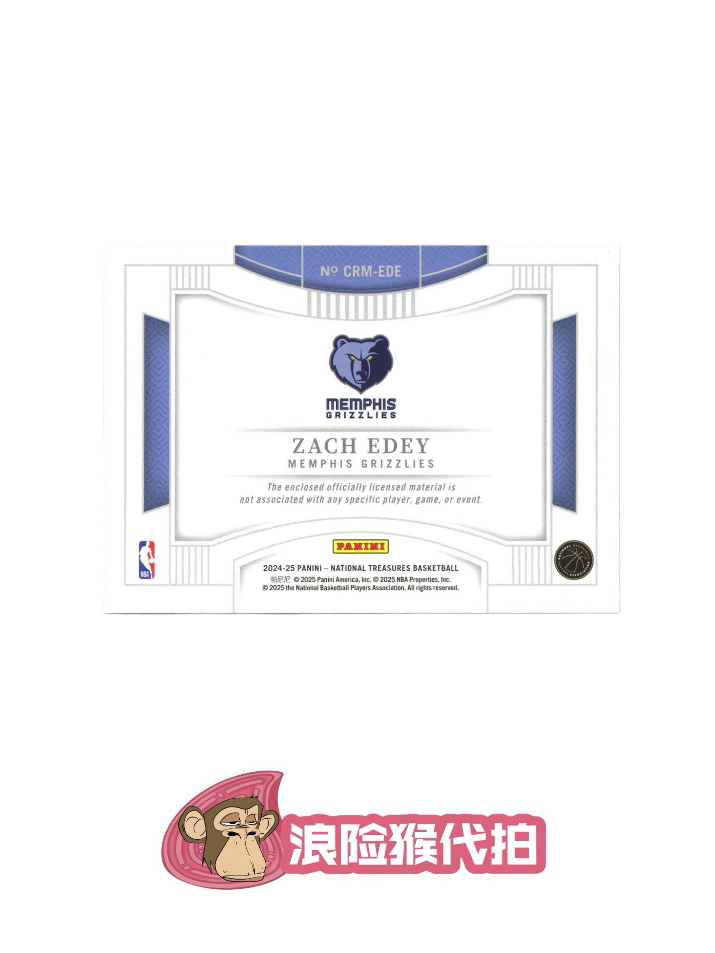 【浪险猴🐒代拍】2024-25 Panini national ZACH EDEY RC 灰熊 扎克 伊迪 新秀 国宝 54/99编 大窗球衣物料 colossal 卡品如图 黎明