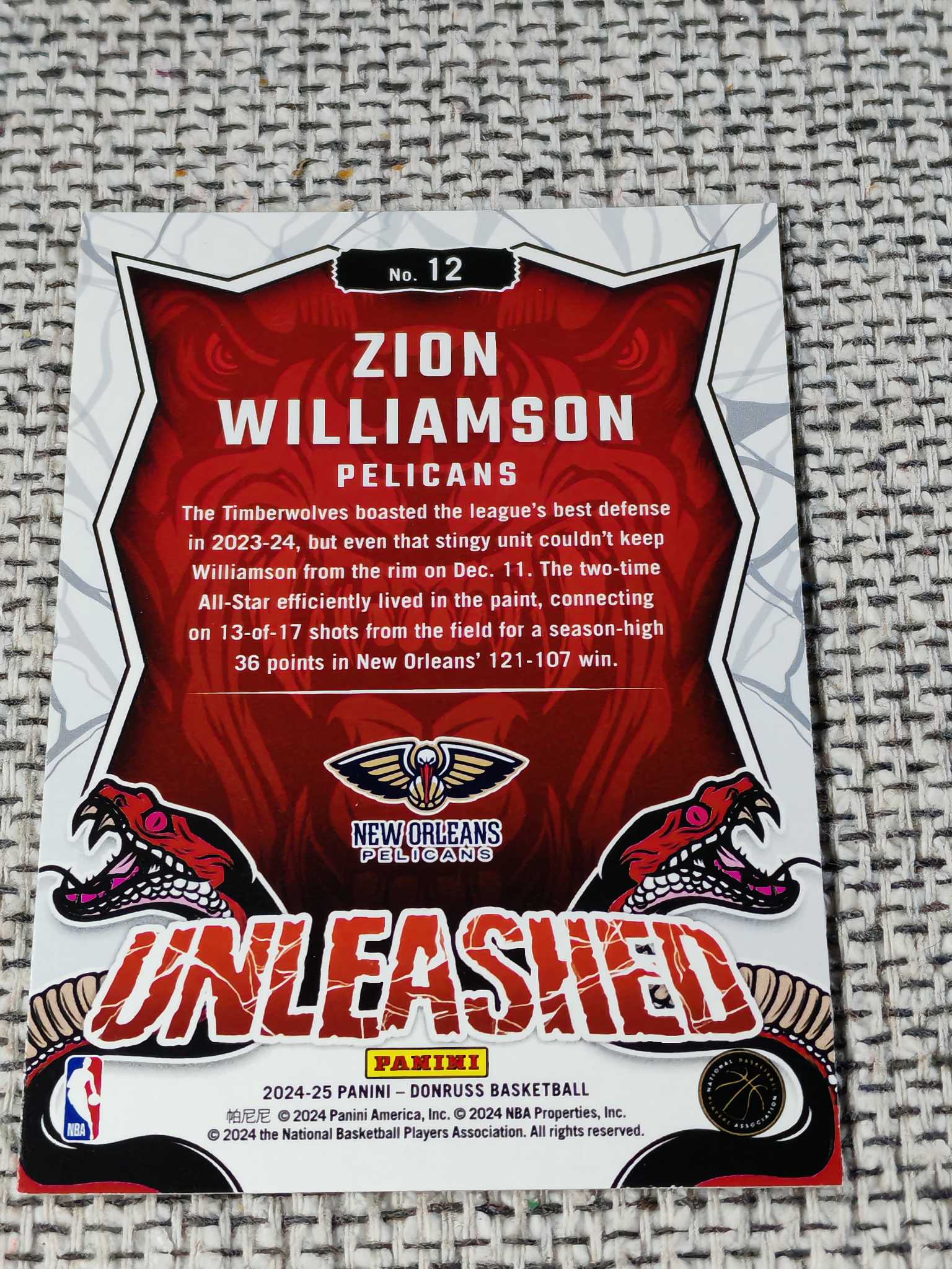 2024-25 Panini Donruss Zion Williamson 锡安 威廉姆斯 钻石折 大比例 狮吼 特卡折射 詹姆斯 eBay价高 YeZi代卖