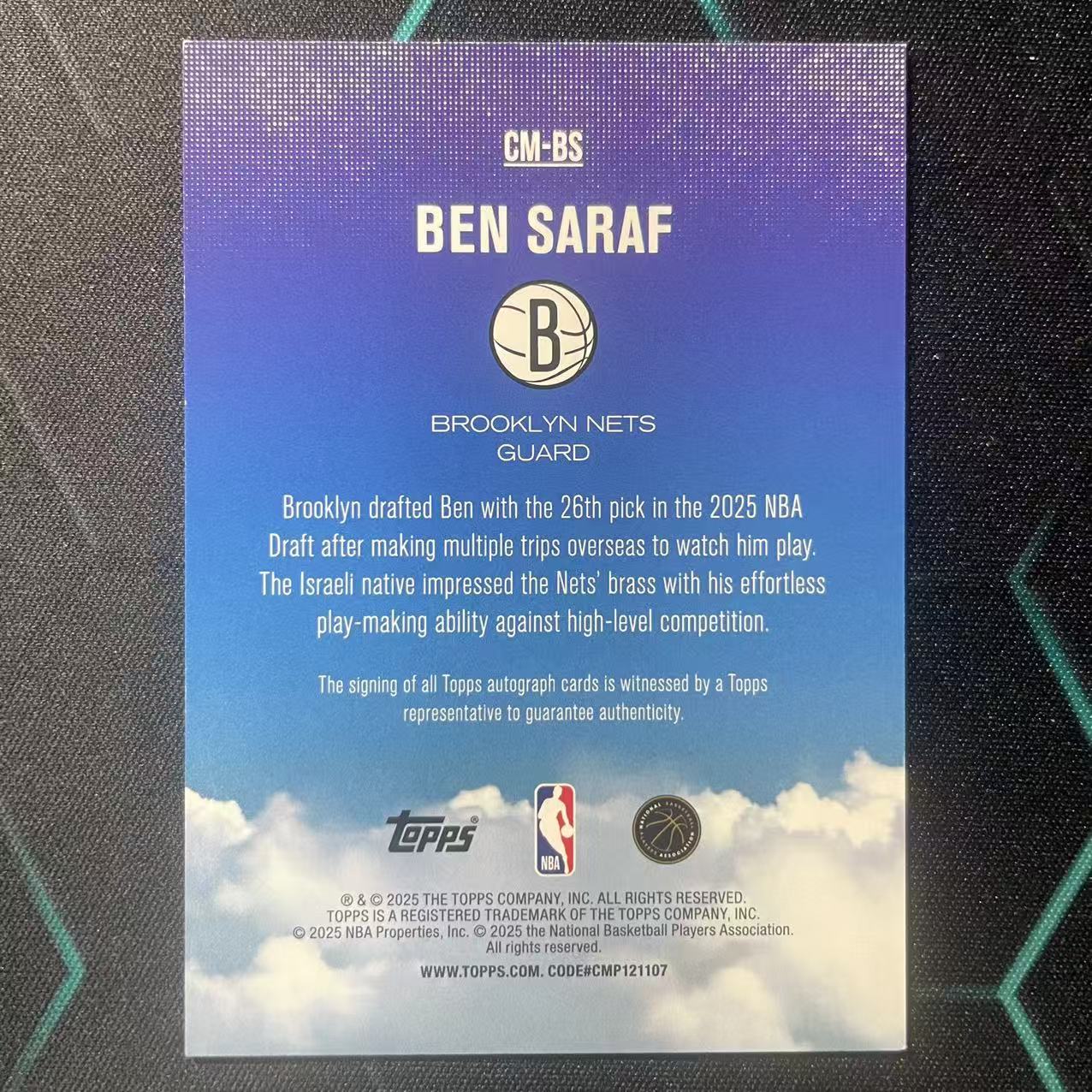 2025 Topps Flagship Ben Saraf RC 【阿福代卖】本 萨拉夫 篮网 新秀 签字 新秀签 现代标志签 银折 收藏必备(行行行)