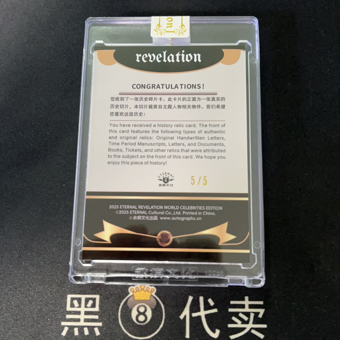 142【黑8代卖】2025 ETERNAL REVELATION 永痕文化 启示录系列 哈里森 绿折 相关物件 历史切片 5/5编 尾编 折射 名人收藏卡 原封砖【ress】