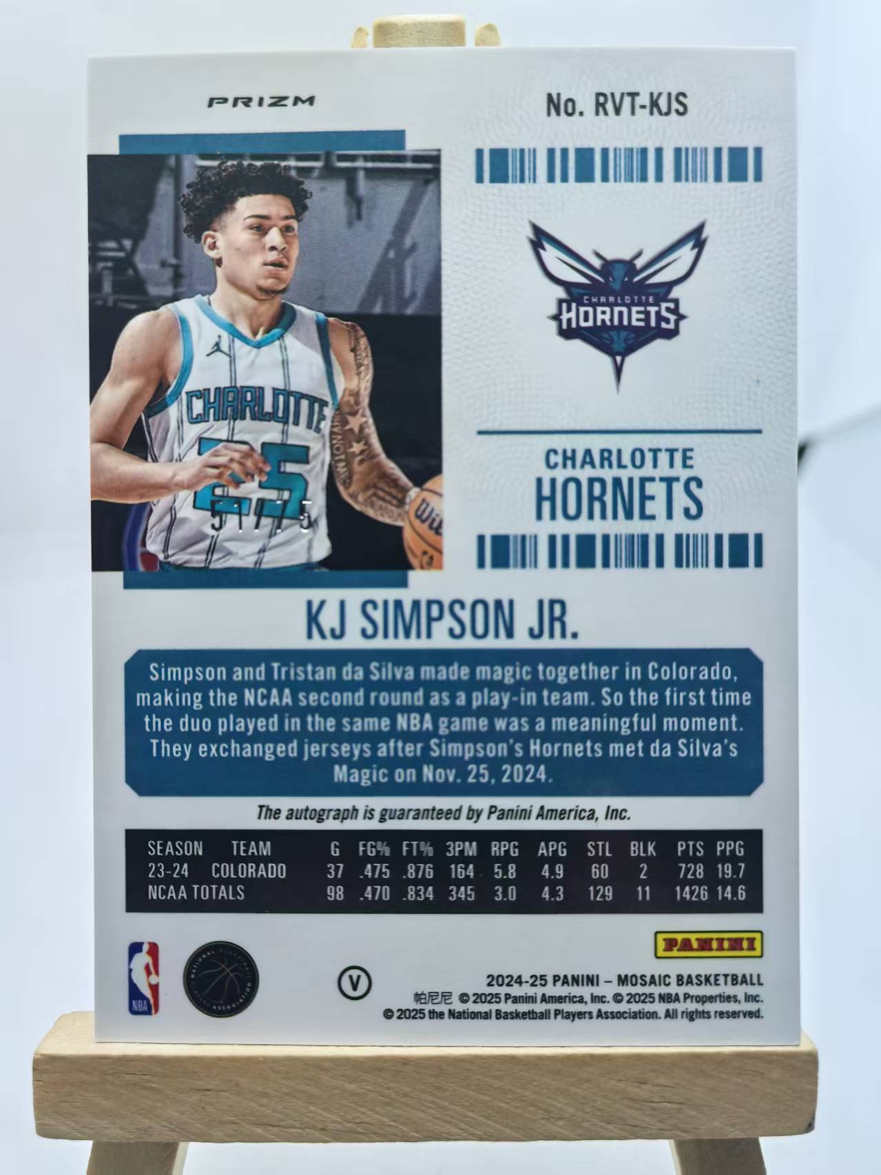2024-25 panini mosaic kj simpson jr 马赛克 黄蜂 kj 辛普森 RC 新秀 签字 马赛克铜折 折射 51/75编 变化版