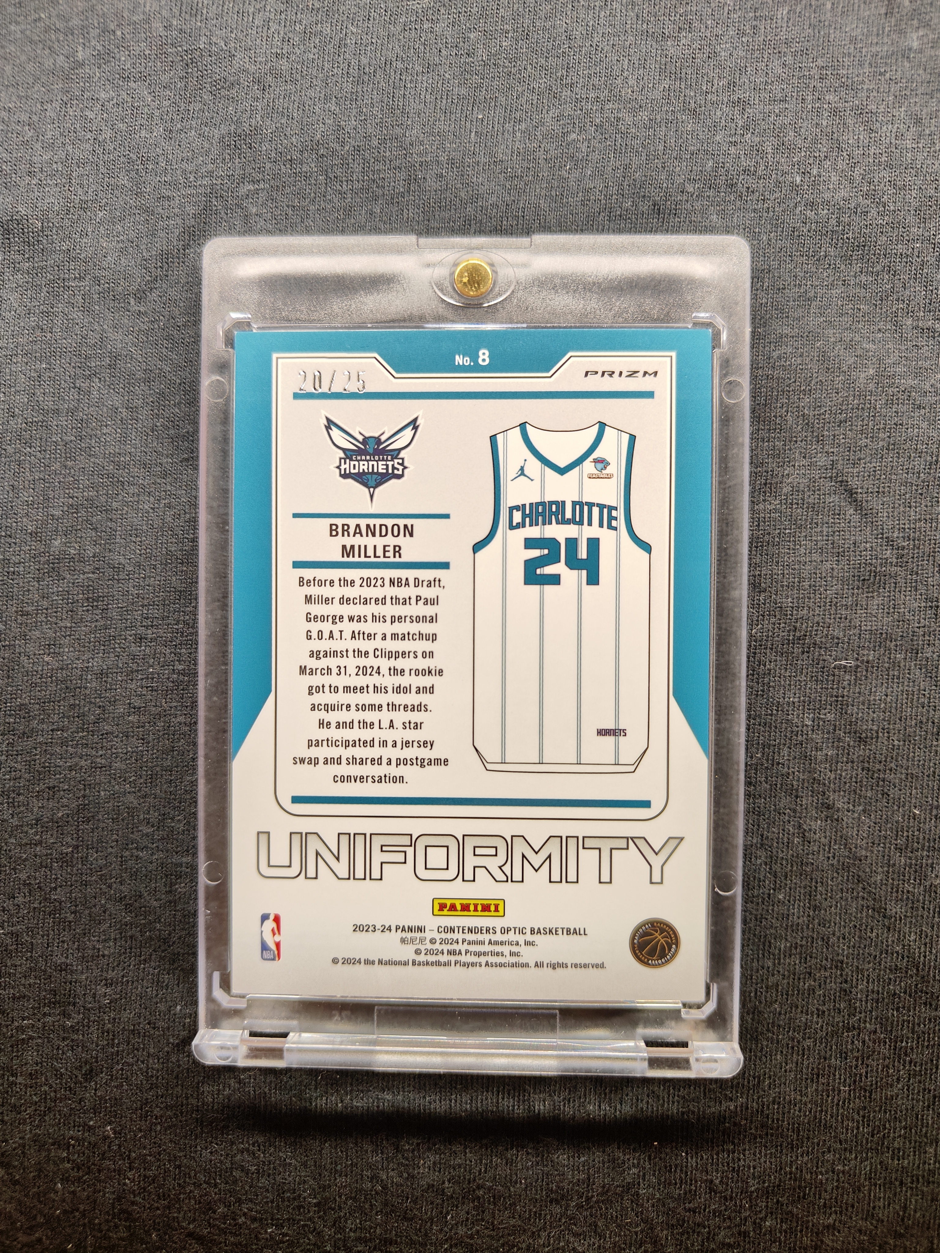 2023-24 Panini Optic Brandon Miller RC 黄蜂 布兰登 米勒 25编 新秀 小背心 特卡 圈圈折 uniformity 大热新秀 榜眼 实卡好看 收藏投资【阿福拍卖】