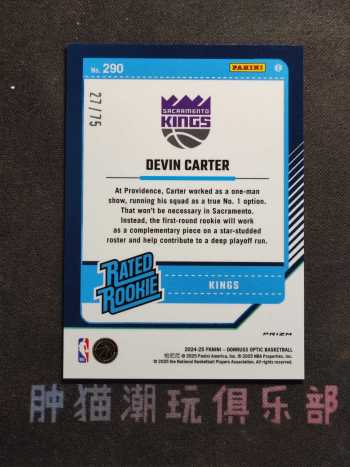 【肿猫球星卡潮玩俱乐部】实体店铺,信誉保障。购买须知:①所有卡的品相为通行品如有重大品相残次问题会在描述中注明。木盒、手提、国宝、IMM、Noir、小真金等等厚卡系列的卡片,有轻微白边白角属于正常品相,折射卡、镜面卡有机械划痕、印刷线属于正常品相,所有卡片不保证后续评级分数。②拍卖卡片不含卡具,自带官方原封砖、原封夹的除外,收到有卡具属于赠送性质,不接受因卡具问题维权,带有原封卡砖、卡夹的卡不保证卡品介意勿拍。③卡片截标后请于3日内通过卡淘线上进行付款,本店保证付款后24小时之内发货,3日内不付款第四日关闭订单,不接受后续协商重开,请免开尊口,本店所有卡片均不支持累计。④签收时请拆封仔细检查卡片品相并录制拆箱视频以便佐证,如果有疑问请于快递签收3日内通过内站内信联系客服,超过3日客服将不予受理。如若遇到快递运输造成卡品损坏与丢失问题,属快递公司的工作失误,本店不予赔偿,但会积极配合买家追诉快递公司的赔偿责任,协助买家将损失降到最低。发货时默认卡淘后台收货人信息,如有其它收货地址,请付款前私信客服提供地址,因地址问题发生纠纷请参考卡淘平台规则。为保证服务质量,本店发货只发顺丰陆运寄付,运费18元,超过首重退运费发顺丰到付,偏远地区(如海南、新疆、西藏、青海、甘肃、内蒙古、云南、广西、宁夏、江西、贵州、港澳台地区)顺丰到付。本店卡淘客服工作时间为:每周一~周五 9:00-17:00,按国家法定节假日公休,由于卡淘工作量巨大,如有怠慢请谅解。更多了解,欢迎加入官方QQ群(天津肿猫球星卡:637855320),店内微信客服(肿猫客服:13001360442)