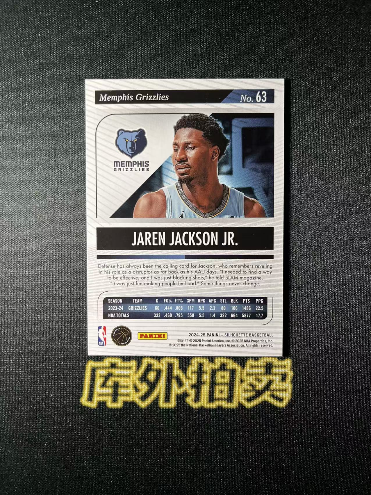 2024-25 Panini Silhouette Jaren Jackson 灰熊 小贾伦 杰克逊 JJJ 剪影系列 No.63 BASE 特卡 凑套必备 卡品如图 未来可期 zj