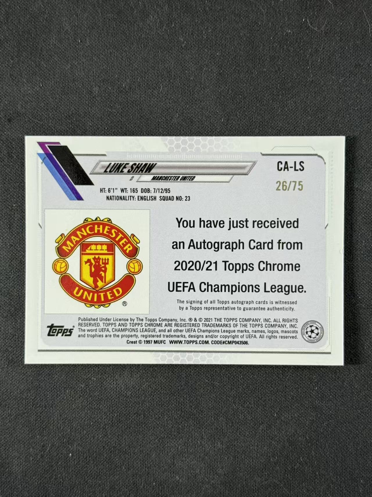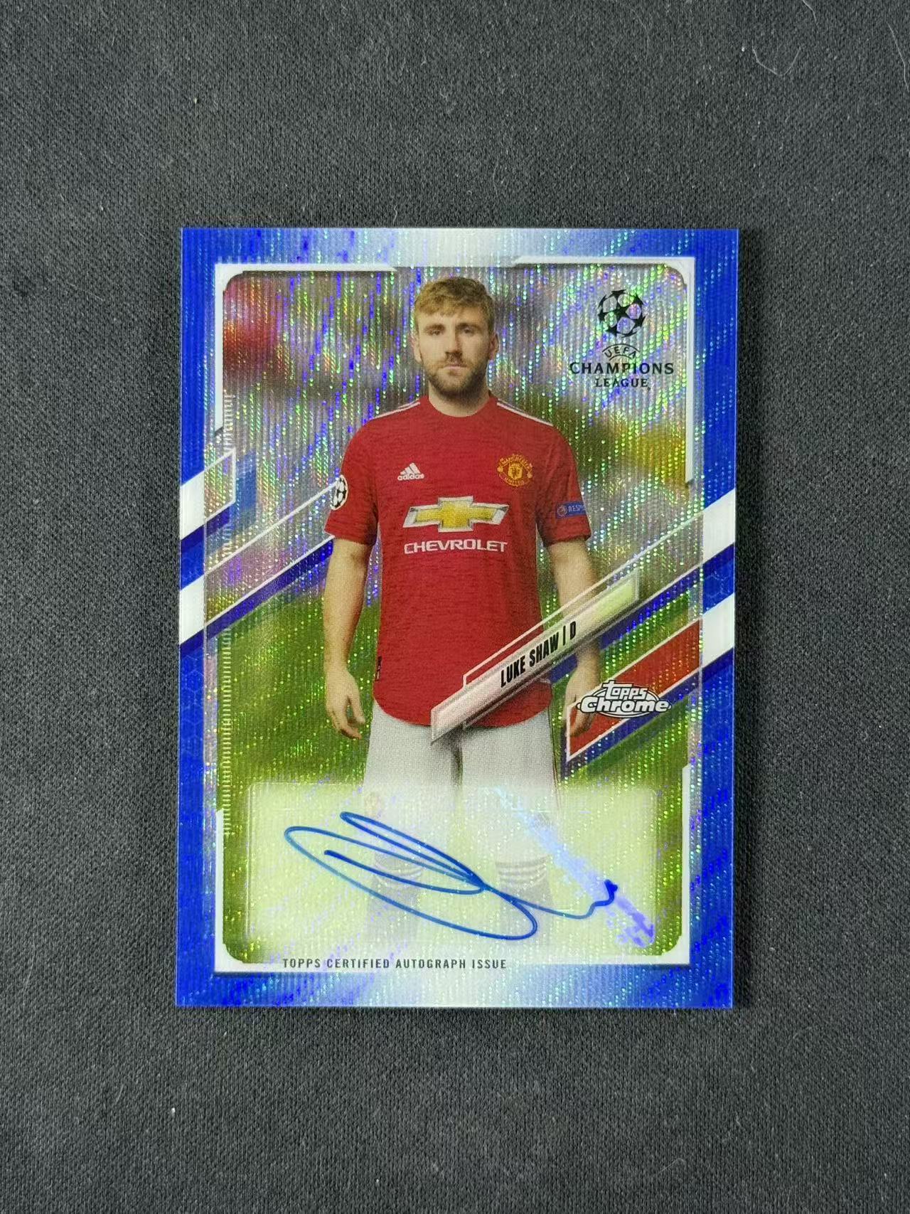 2021 Topps Chrome Luke Shaw 【林林拍卖拜仁】tc系列 欧冠 英超 曼彻斯特联 曼联 卢克肖 26/75编 蓝波纹折 签字