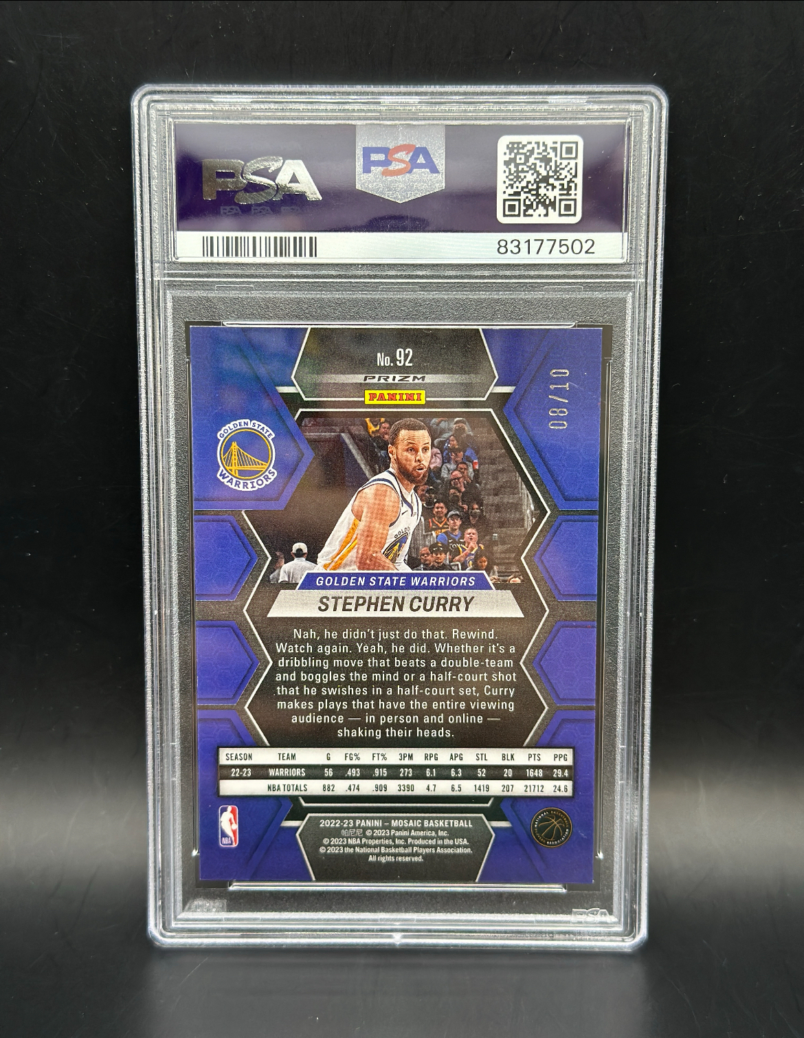 2022 Panini Mosaic Stephen Curry 斯蒂芬 库里 勇士 马赛克 /10编 折射 粉折 PSA8高分评级 晚安 POP2