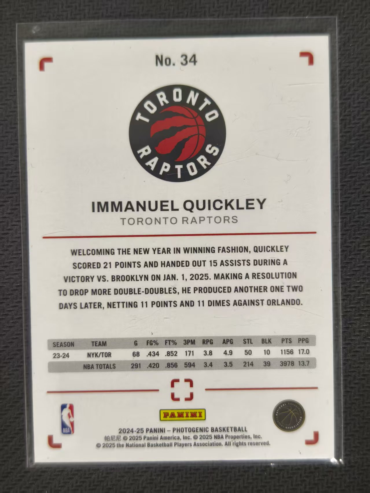 2024-25 Panini Photogenic Immanuel Quickley 奎克利 快哥 上镜 精美选图 卡品如图