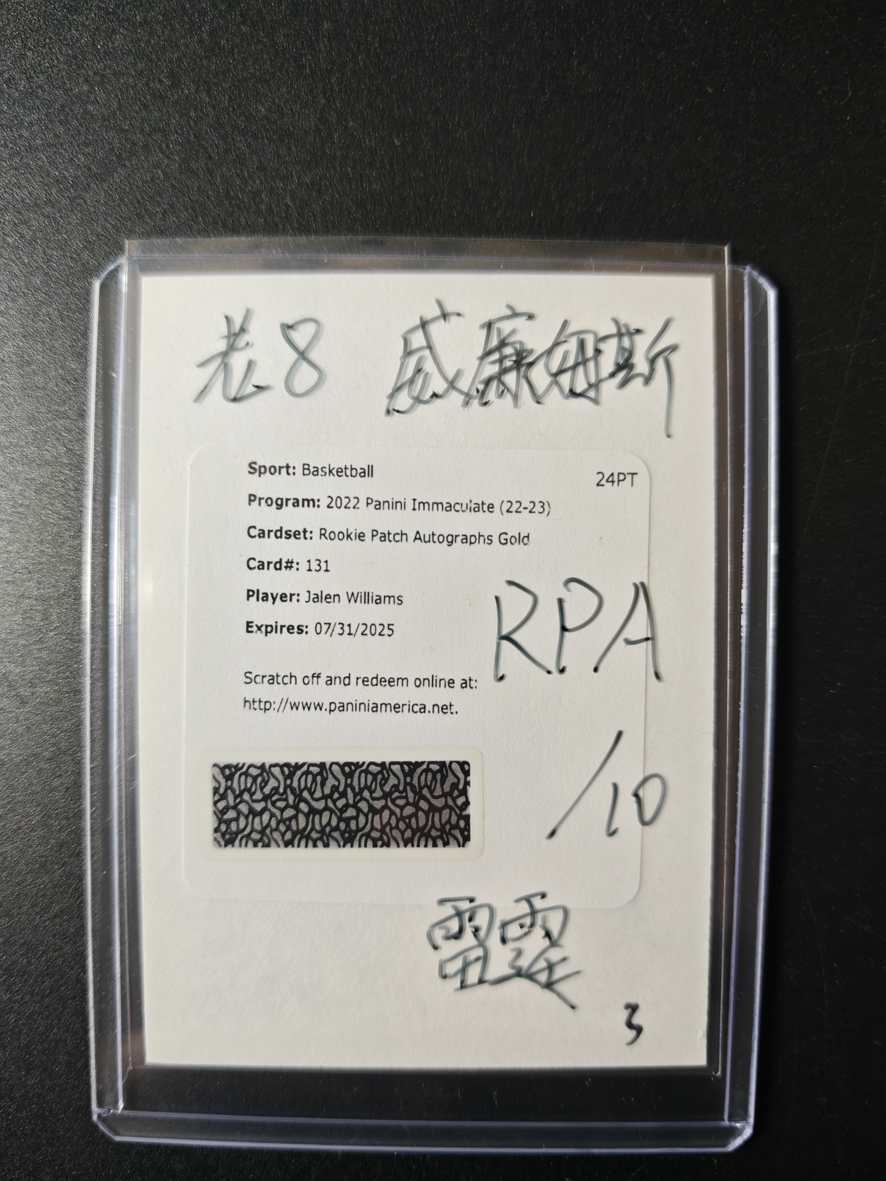 线上支付,直接付款给平台!付款后一定站内信留言!为了卡片安全,只发顺丰,总金额2000以上建议顺丰到付保价,如因未保价快递中有任何问题导致卡品受损遗失等买家联系快递处理赔付,总金额2000以上空运,如需发陆运站内信留言即可。由于快递量大,一般一周发两次货,会根据付款顺序3-7日内发出。卡品如图,一般通行品以上,如无说明则为通行品,如有瑕疵会提供文字说明。国宝imm等系列厚卡,老卡有白边白角属于正常卡品,镜面卡签有小划痕属于正常通行品相,评级卡砖上的划痕和破损不属于品相问题,一定把拍卖图片看清,折射系列不保证金标,要评级追求金标者请直接购买金标。拍后请于3日内付款,5日内不付款将直接申请投诉封号;不支持累计。不接受任何转让转拍合并发货的卡,买家若转让可将卡发回后自行处理。卡淘留言量较大,我们看到后会第一时间给您回复。拍卖为代拍,有想寄卖的朋友可以站内信联系。欢迎抖音搜索小喷说,定期更新球星卡相关视频。