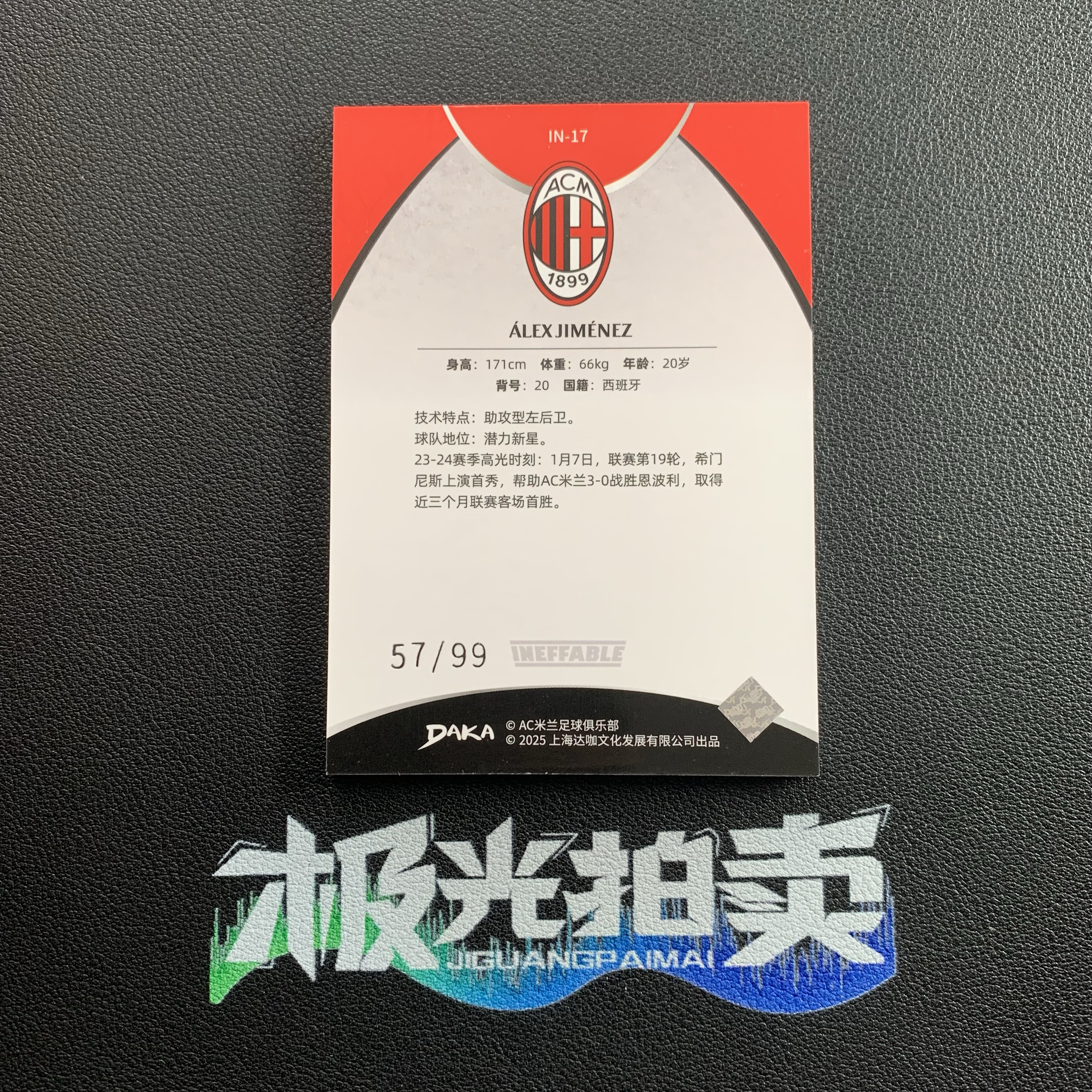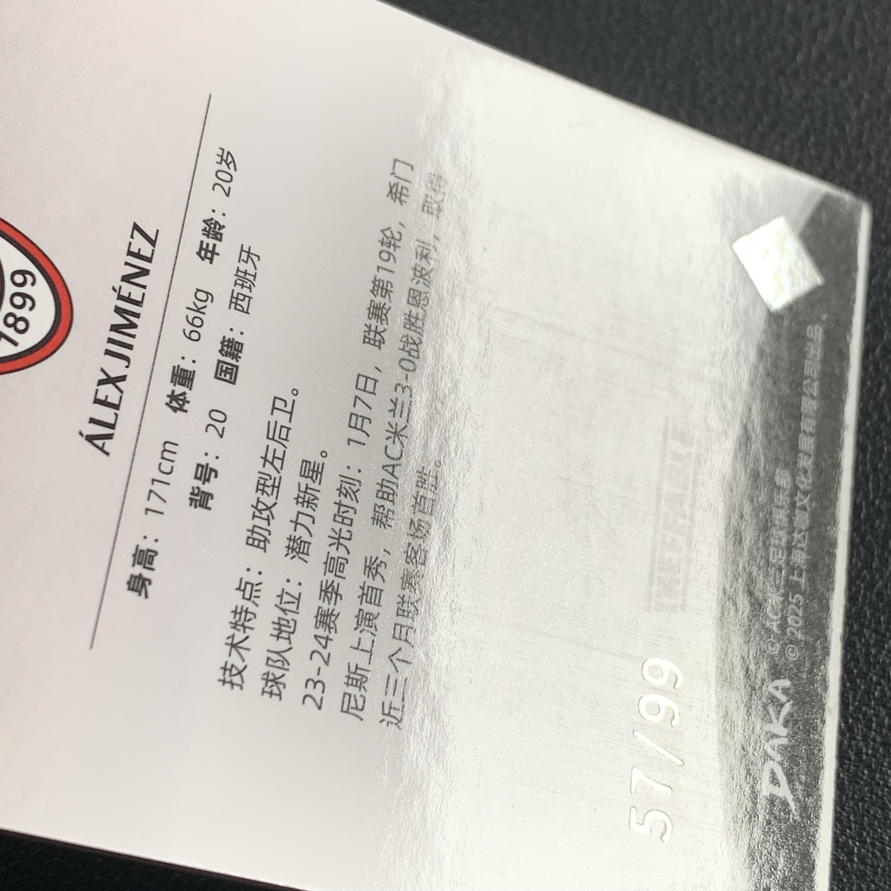 2025 DAKA AC米兰队盒 Alex JImenez 达咖 希门尼斯 57/99编 银平行 实卡精美 收藏必备 t WG368