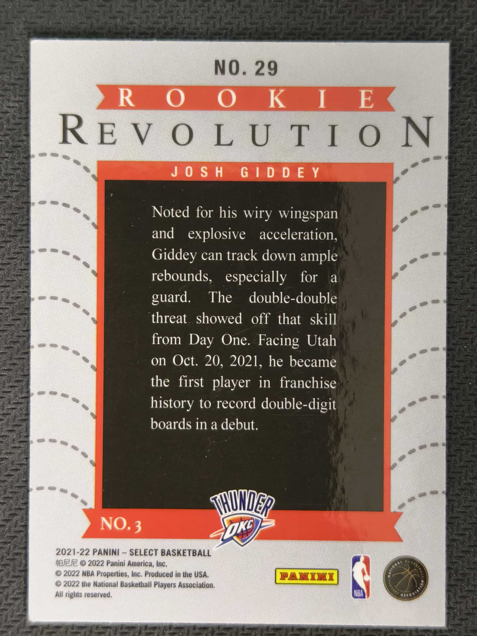 2021-22 Select JOSH GIDDEY 约什 吉迪 雷霆时期 新秀 Revolution 革命特卡 好卡