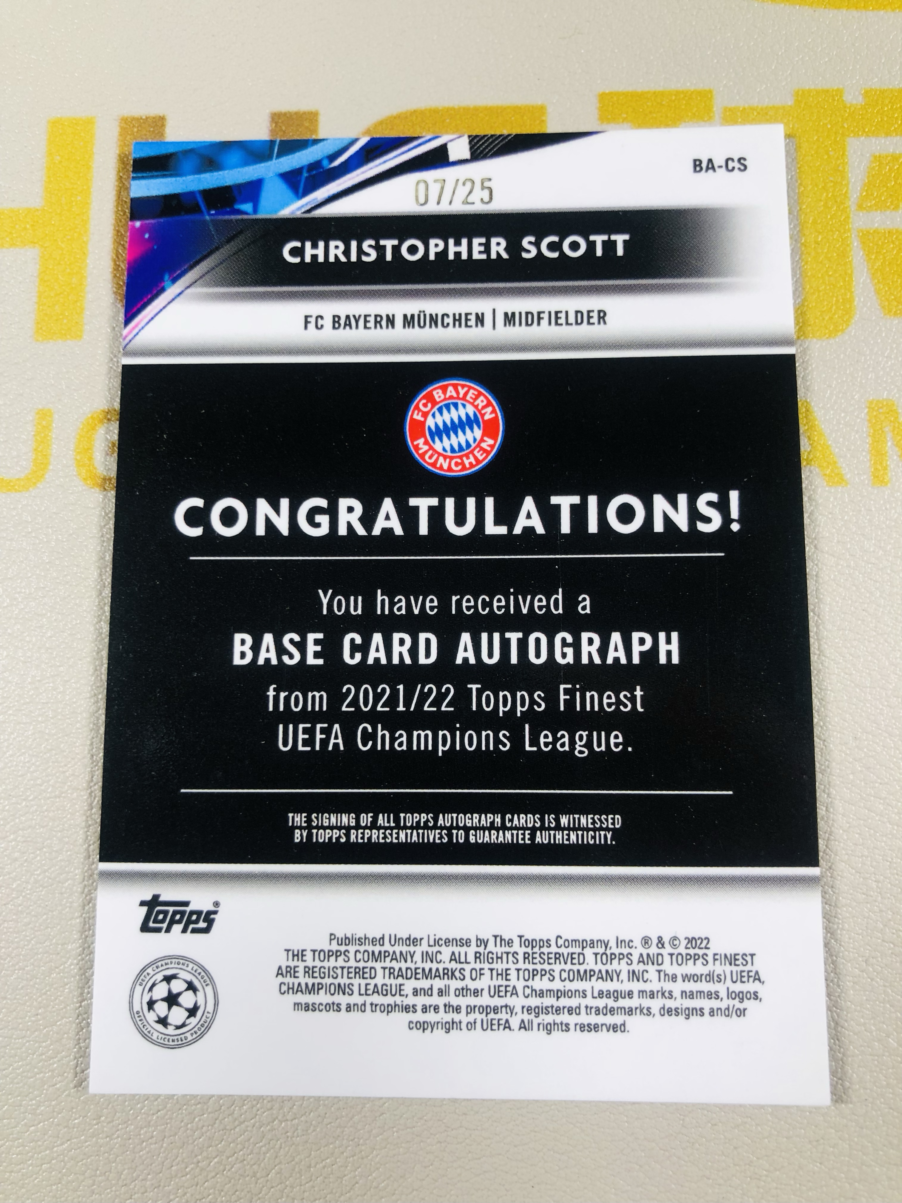 2022 Topps Finest Ccott RC 欧冠 Finest 拜仁慕尼黑 新秀 斯科特 07/25编 签字 单卡低于10元无卡夹介意勿拍 磁铁1118