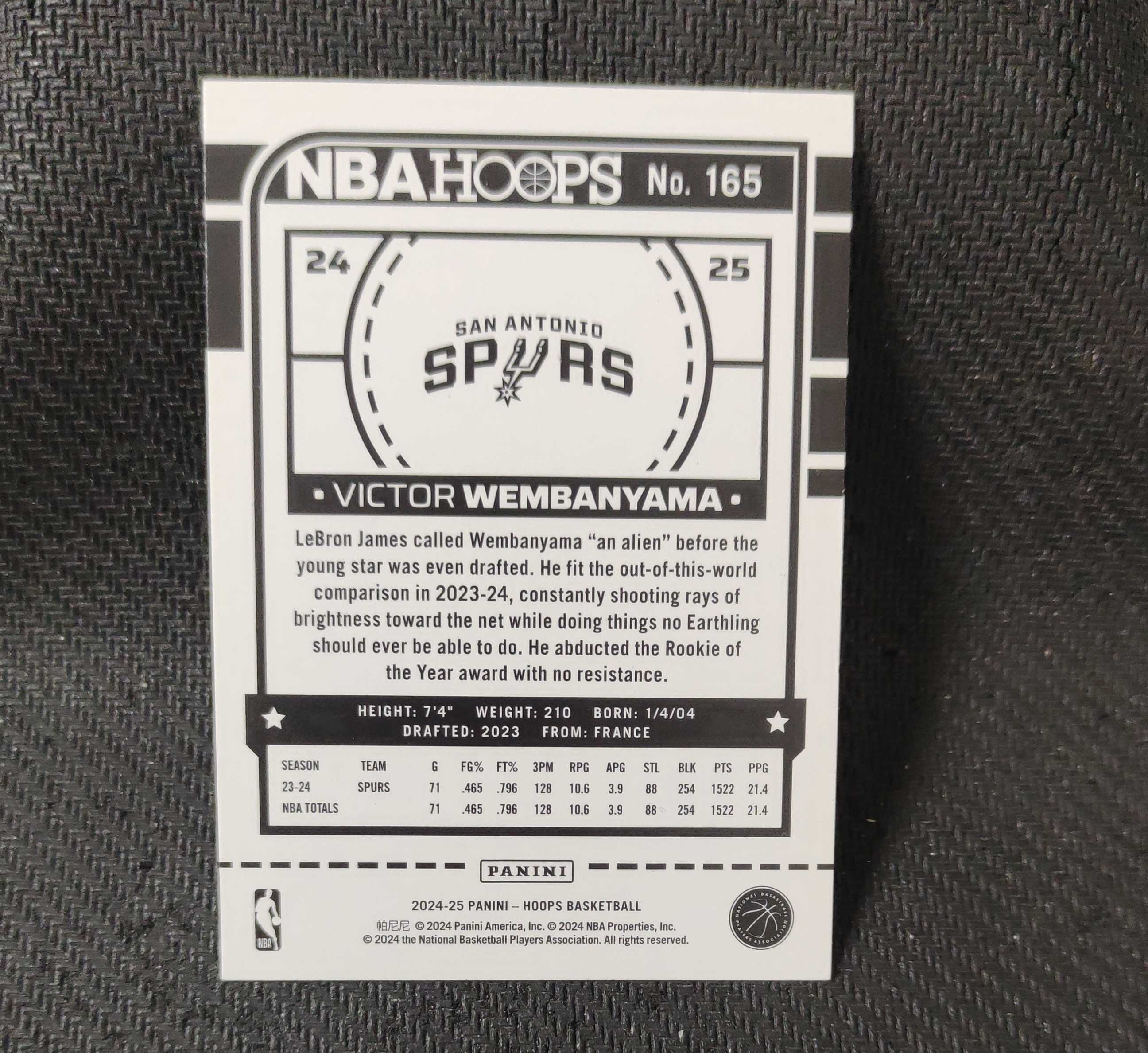 2024-25 Panini Hoops Victor Wembanyama 维克托 文班亚马 马刺队 收藏必备 可累计 接代卖