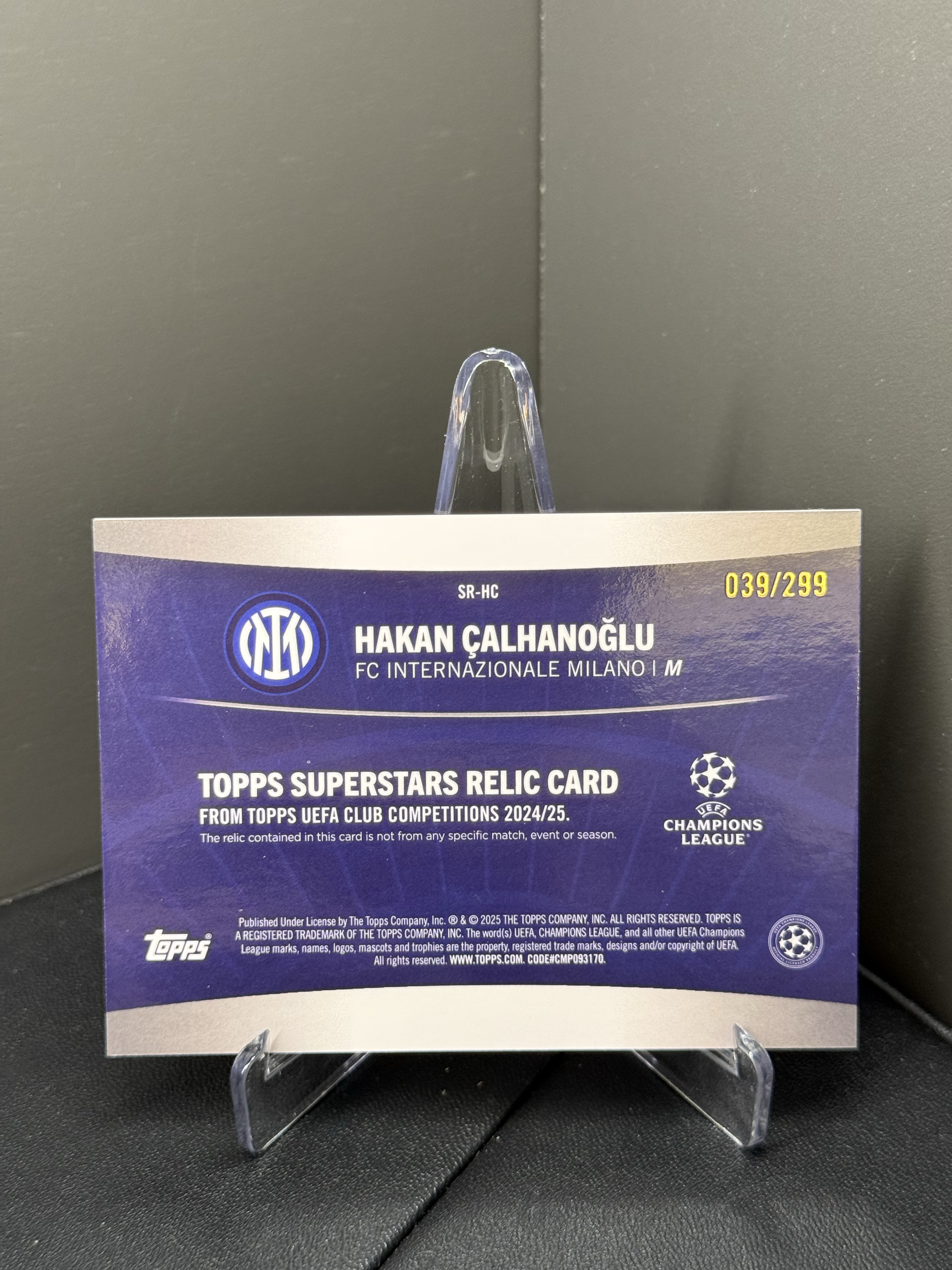 2024-25 Topps UCC Hakan Calhanoglu 恰尔汗奥卢 国际米兰 欧冠 patch物料切割 299编 紫折 瑕疵如图 签字 收藏必备 代拍私信