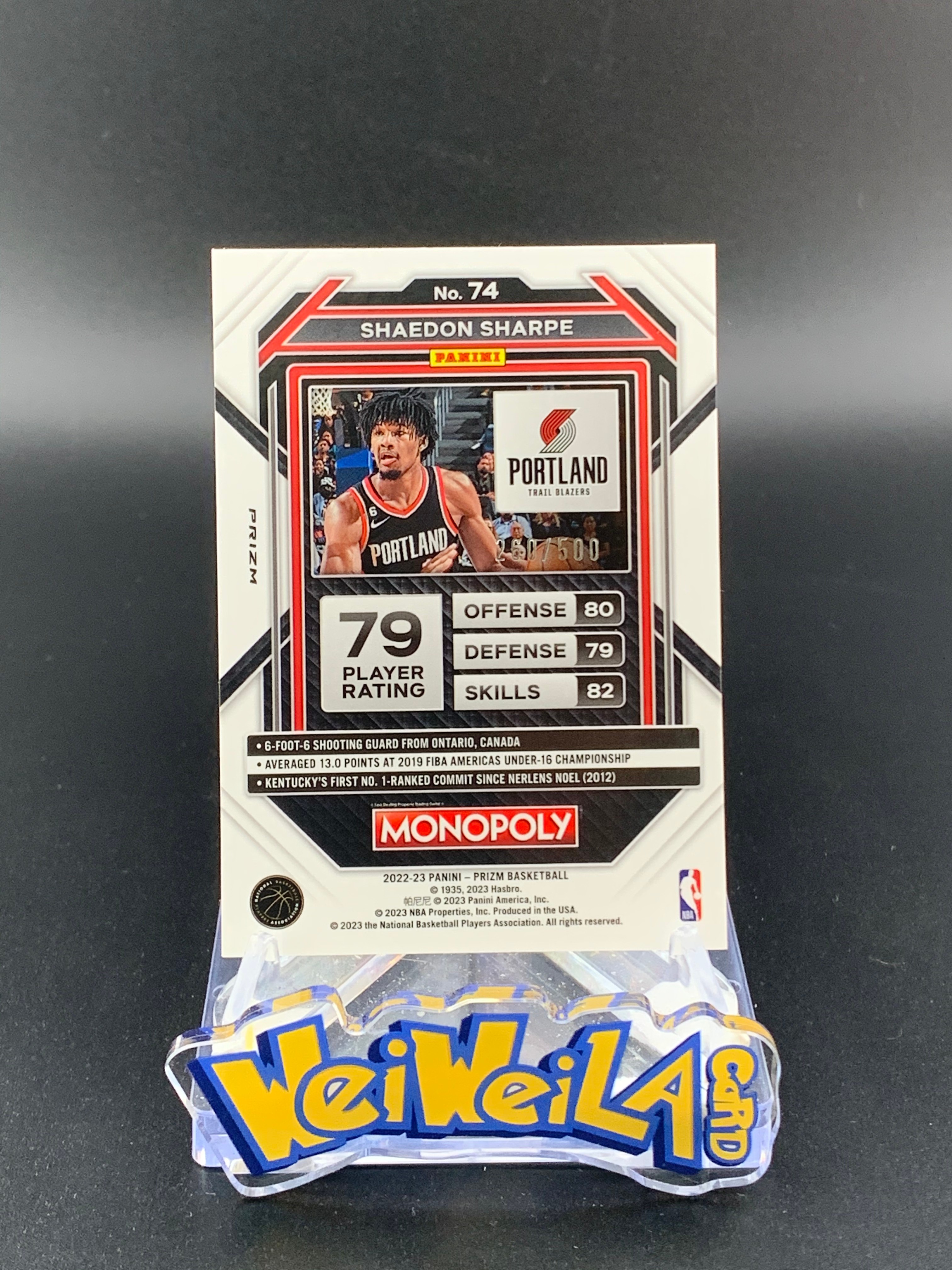 【微微辣代卖】L1-18昊昊哥 2022-23 Panini Prizm Shaedon Sharpe X20S PZ大富翁 元年 开拓者 谢登 夏普 金shimmer折射 500编