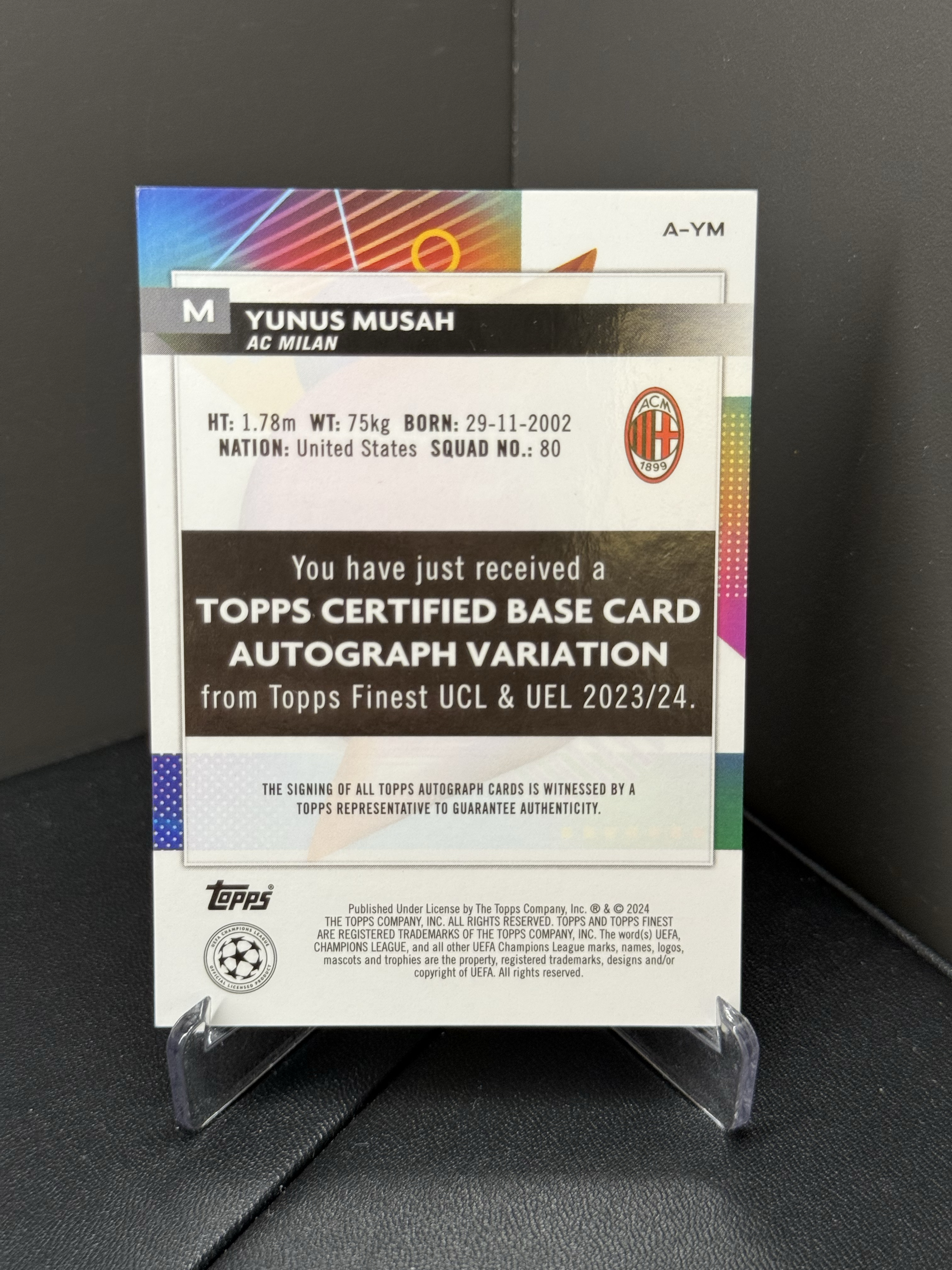 2023-24 Topps Finest 欧战 Yunus Musah 尤努斯 穆萨 AC米兰 美国 欧冠 签字 蓝折 折射 150编 瑕疵如图 收藏必备 代拍私信