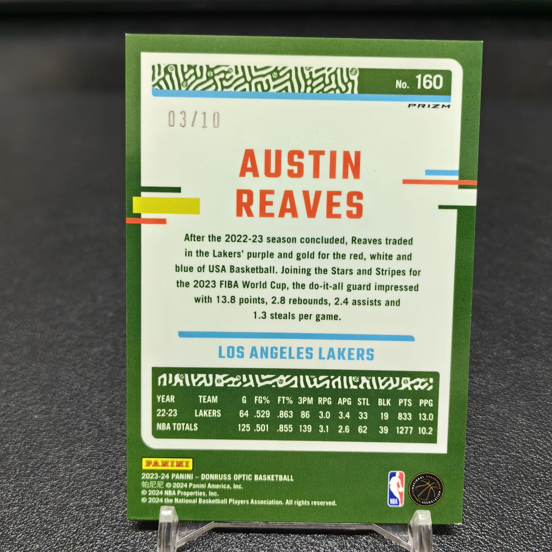 【浩行拍卖 截标预付82%】2023-24 panini donruss optic Austin Reaves 杜蕾斯 湖人 奥斯汀 里弗斯 里夫斯 金圈圈折 折射 3/10编 超低编 专收必备 瑕疵看图「晴嗓」1119C01龘
