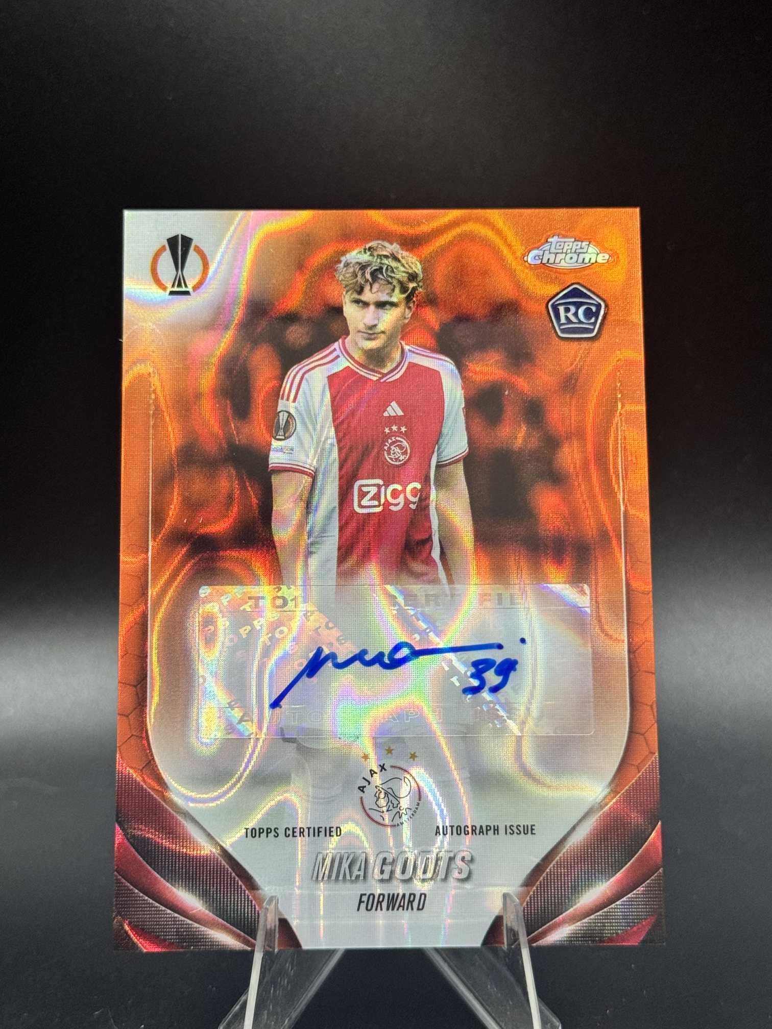 2024 Topps Chrome Mika Godts 【小桃气拍卖】欧战 TC 米卡 古茨 新秀 RC 签字 橙熔岩折 折射 阿贾克斯 瑕疵如图 V530