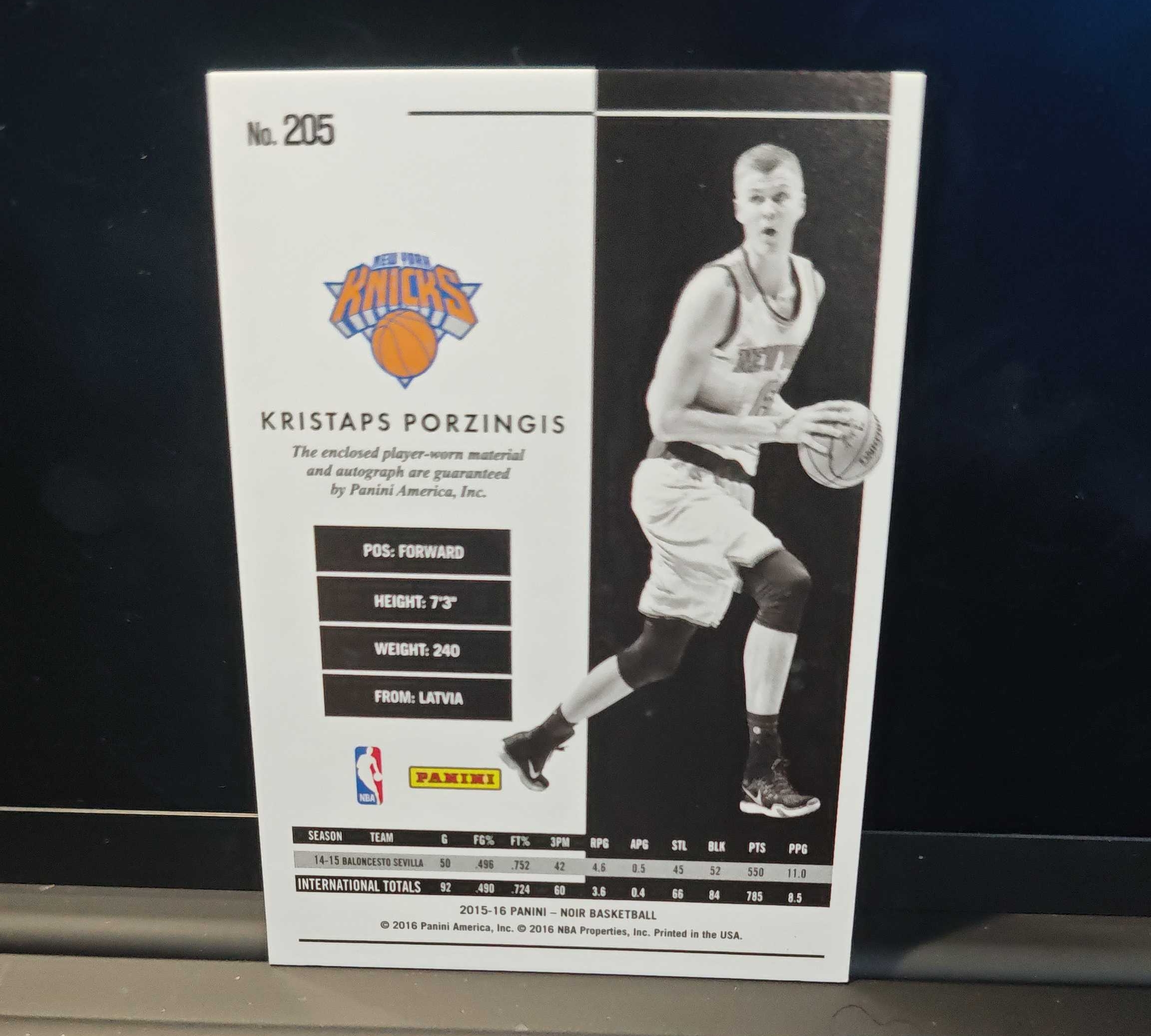 2015-16 Panini Noir Kristaps Porzingis 【小猪包代卖】波尔津吉斯 波神 诺尔 43/99编 rpa 新秀 签字物料 卡签 尼克斯 老鹰 暴力切割 切到字母 凯文