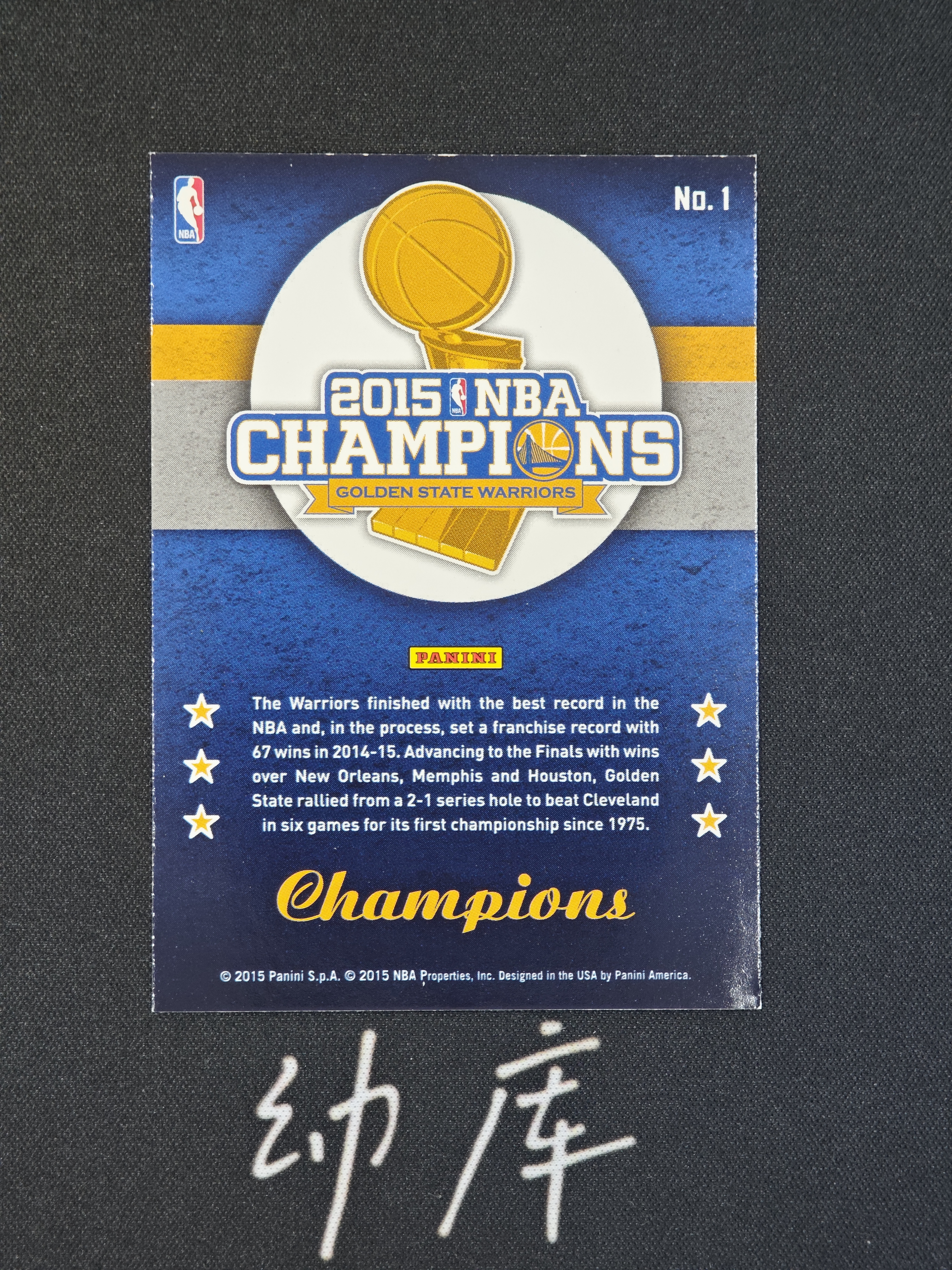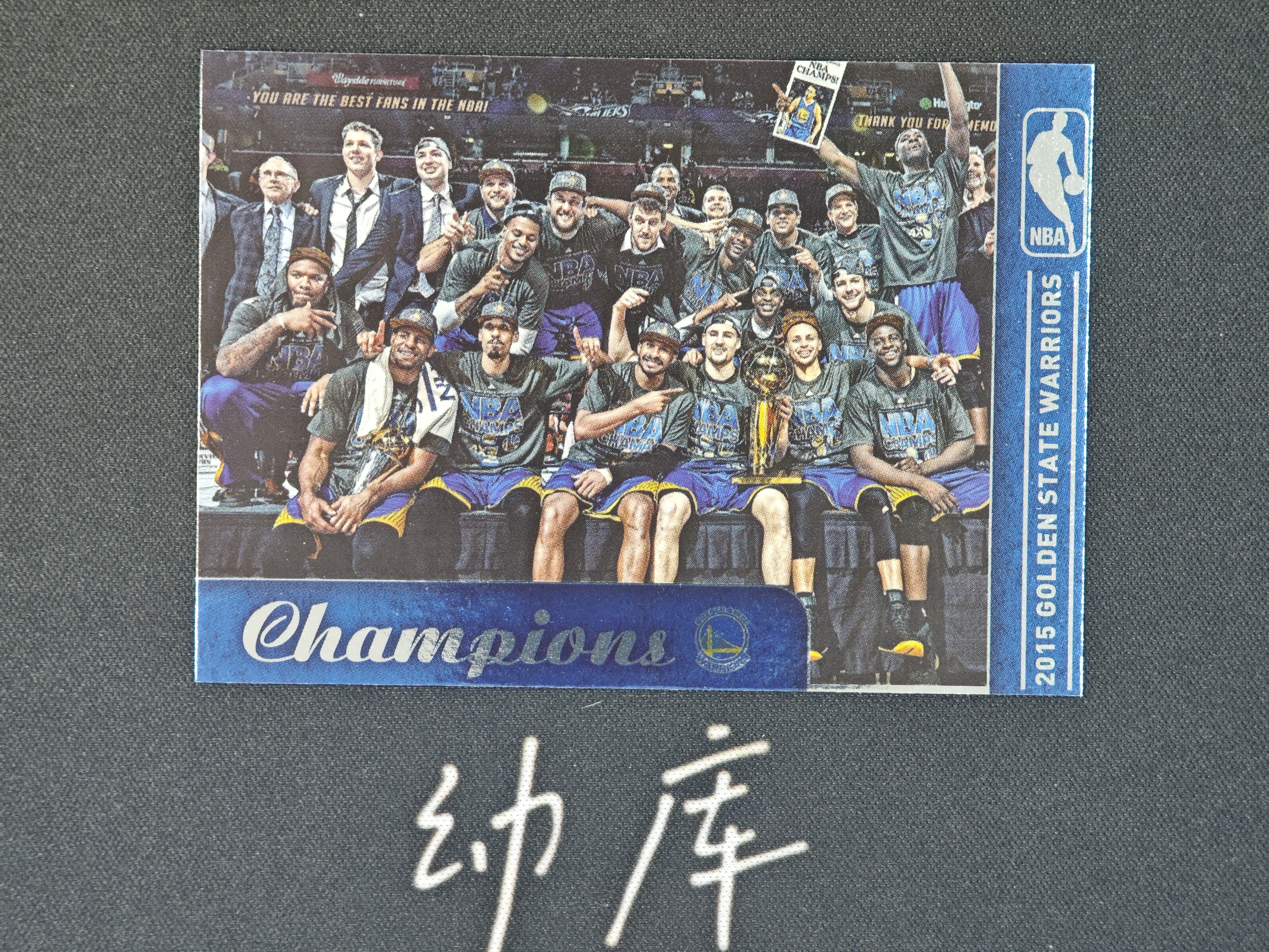 2015 Panini S.P.A NBA Golden State Warriors 中雅图「幼库拍卖」总冠军合影 合照 捧杯 库里 汤普森 格林 伊戈达拉 利文斯顿 全家福 特卡 大比例 卡品如图