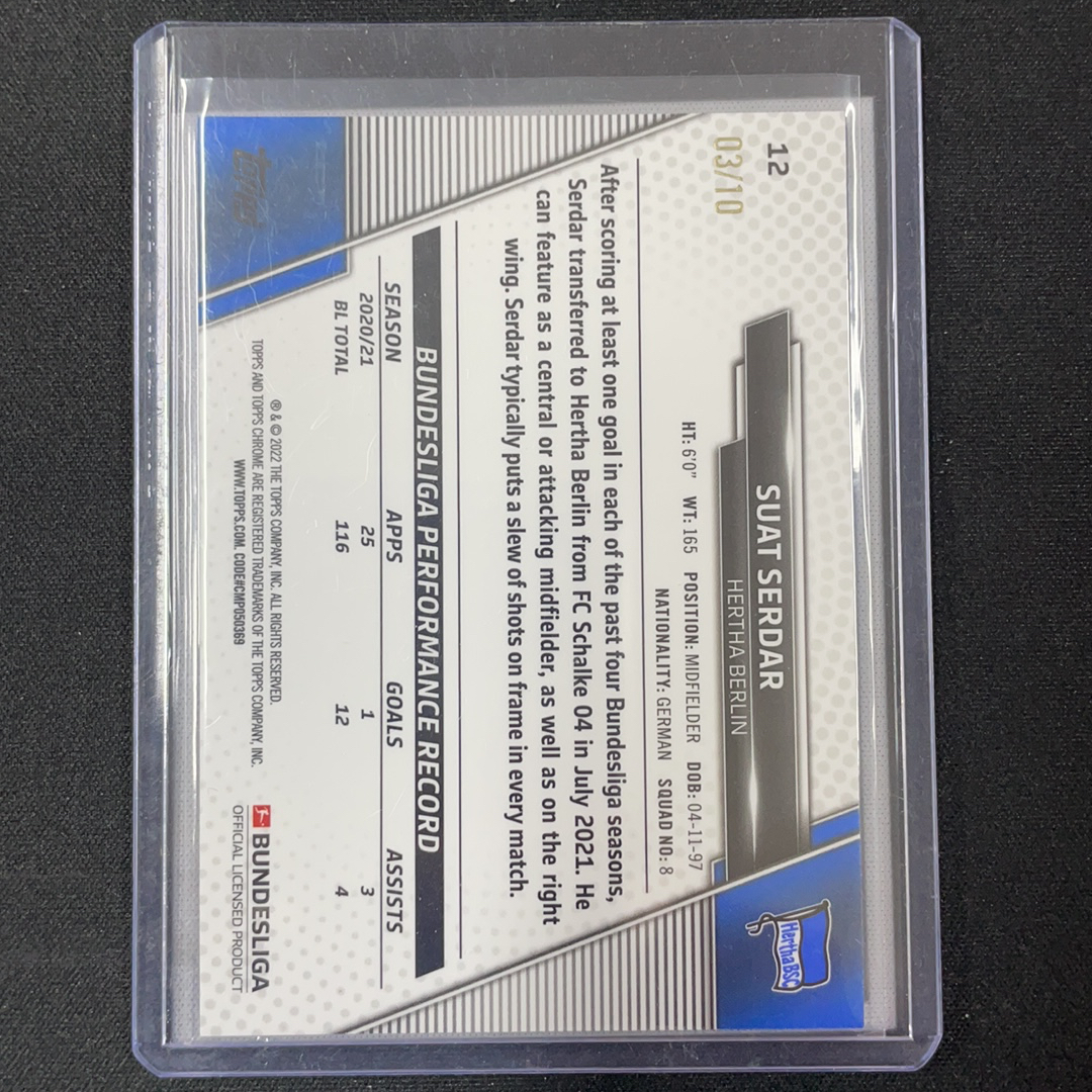 2021-22 Topps Chrome tc 德甲 苏亚特 塞尔达尔 Suat Serdar 超低编 03/10编 红折 柏林赫塔 美因茨 德国 卡品如图 收藏必备 俊哥