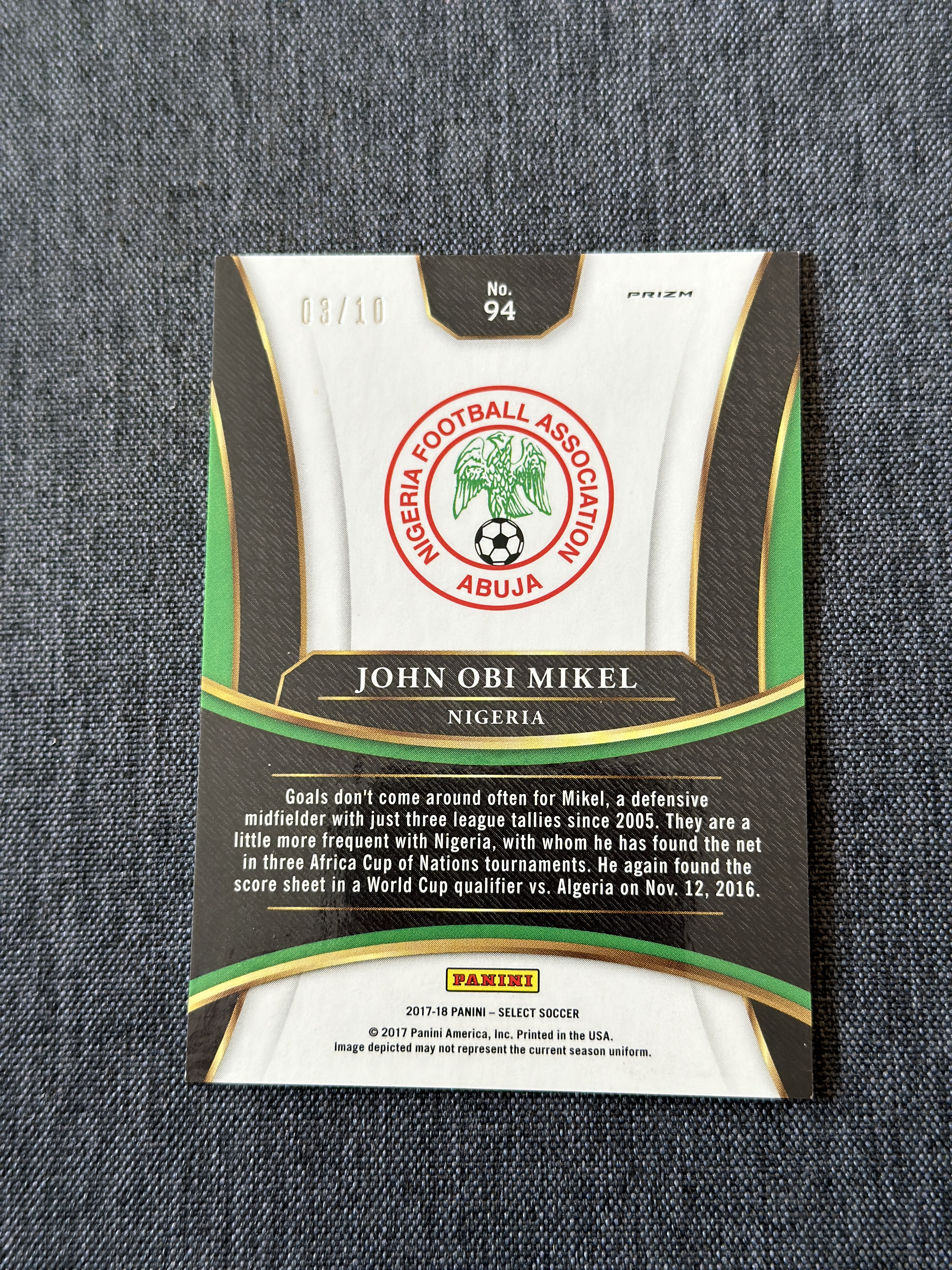 2017-18 Panini Select John Obi Mikel 约翰 米克尔 3/10编 同背 分母 金折 金平行 正金折 尼日利亚 传奇名宿 切尔西 天津泰达【FR】