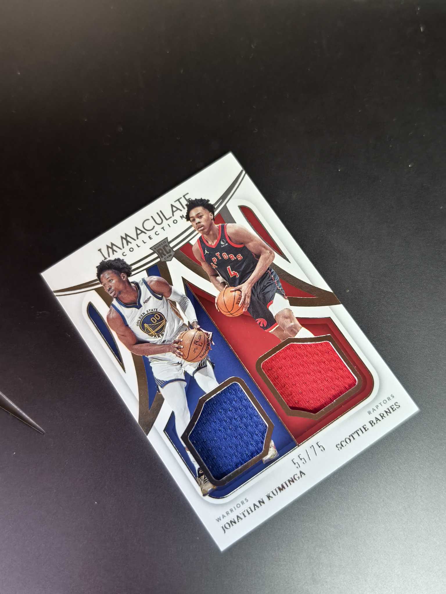 2021-22 Panini Immaculate Jonathan Kuminga 爱咪咪 新秀RC 库明加 巴恩斯 55/75编 双人双窗暴力球衣物料切割