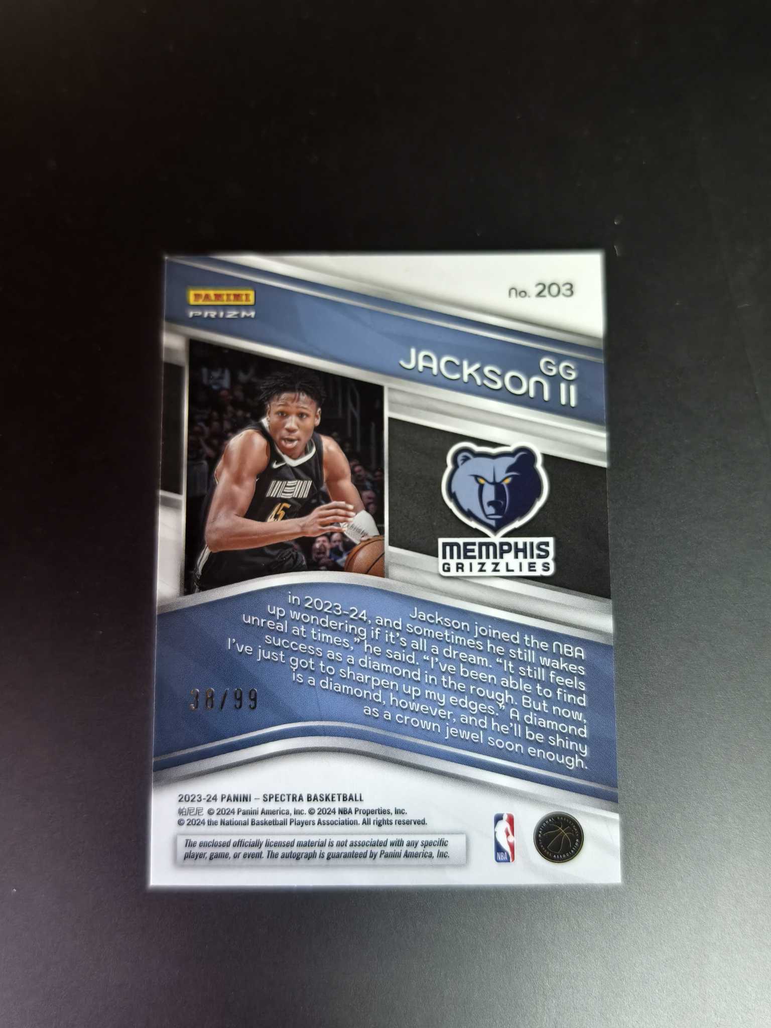 帕尼尼 rc 光谱 银折 签字 亲穿 球衣 新秀 GG杰克逊 签字 物料 ja 38/99编 彩虹脉冲折 稀有 潜力无限