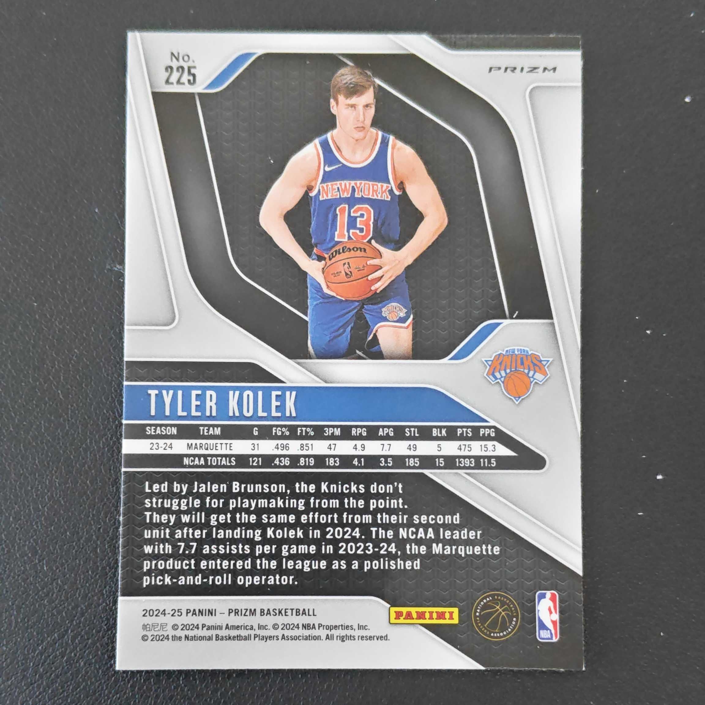 2024-25 Panini Prizm Tyler Kolek 尼克斯 Base 银折 卡品如图 kolek