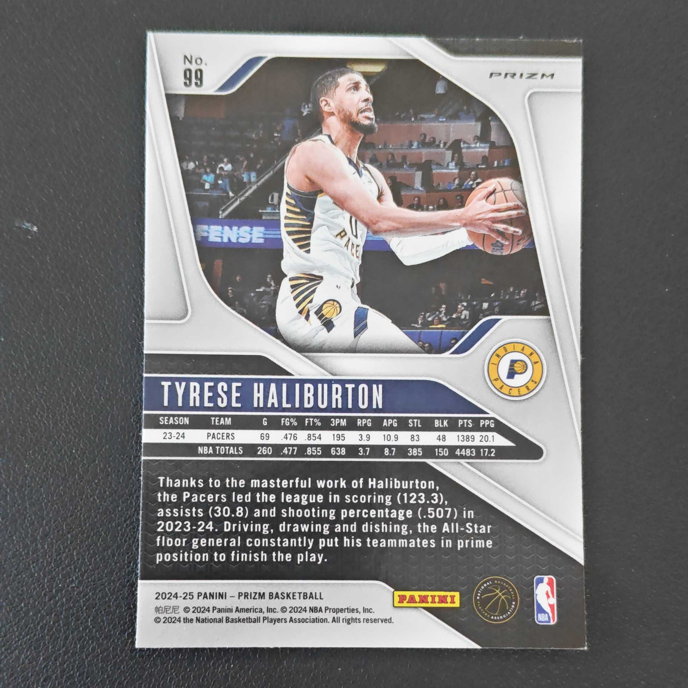 2024-25 Panini Prizm Tyrese Haliburton 步行者 当家球星 泰雷塞 哈利伯顿 哈里伯顿 PZ 正银折 折射 卡品如图 专收必备