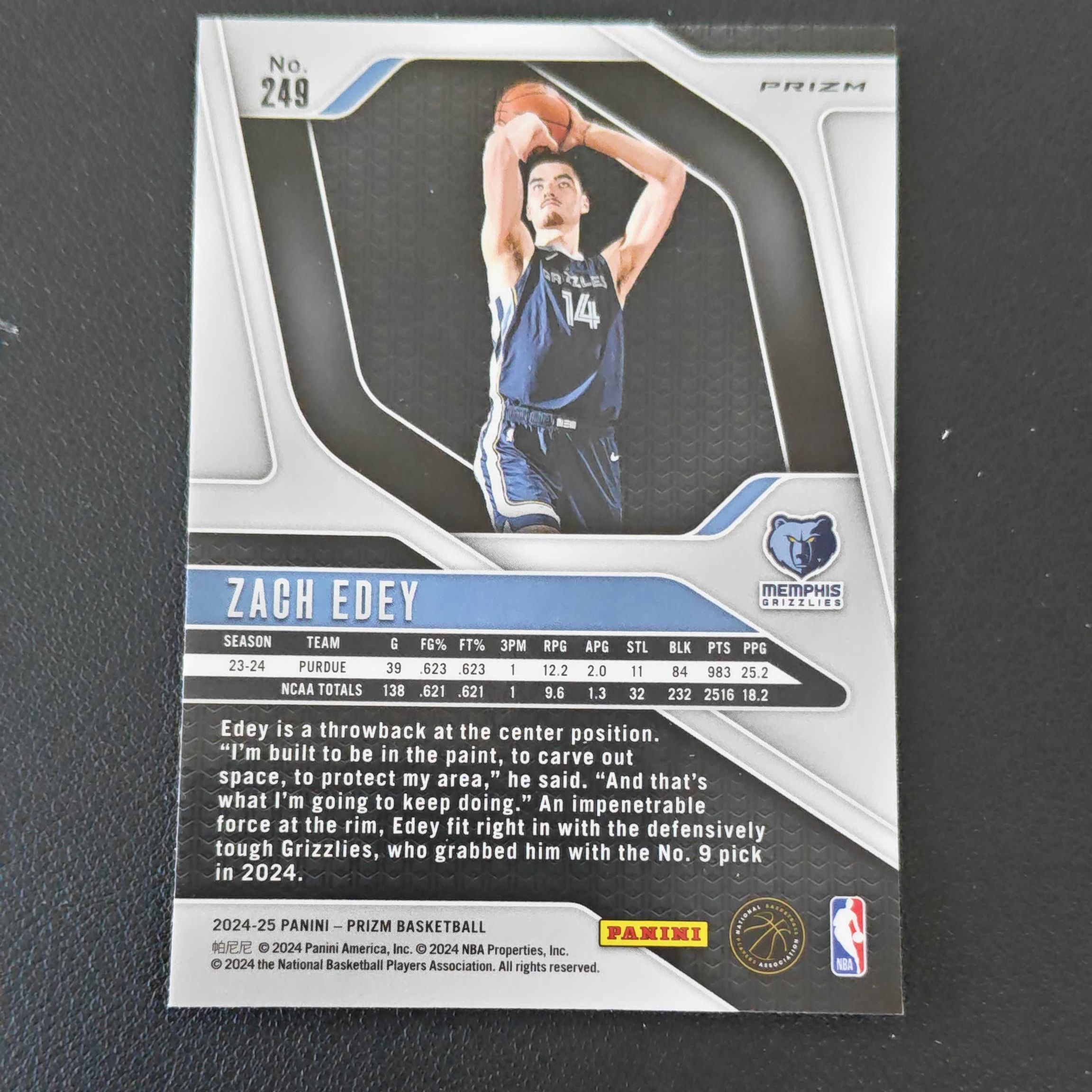 2024-25 Panini Prizm Zach Edey RC 扎克埃迪 伊迪 粉碎冰折 pz 灰熊 新秀 卡品如图 斯蒂芬卡斯尔里萨谢萨尔克内克特麦凯恩同级