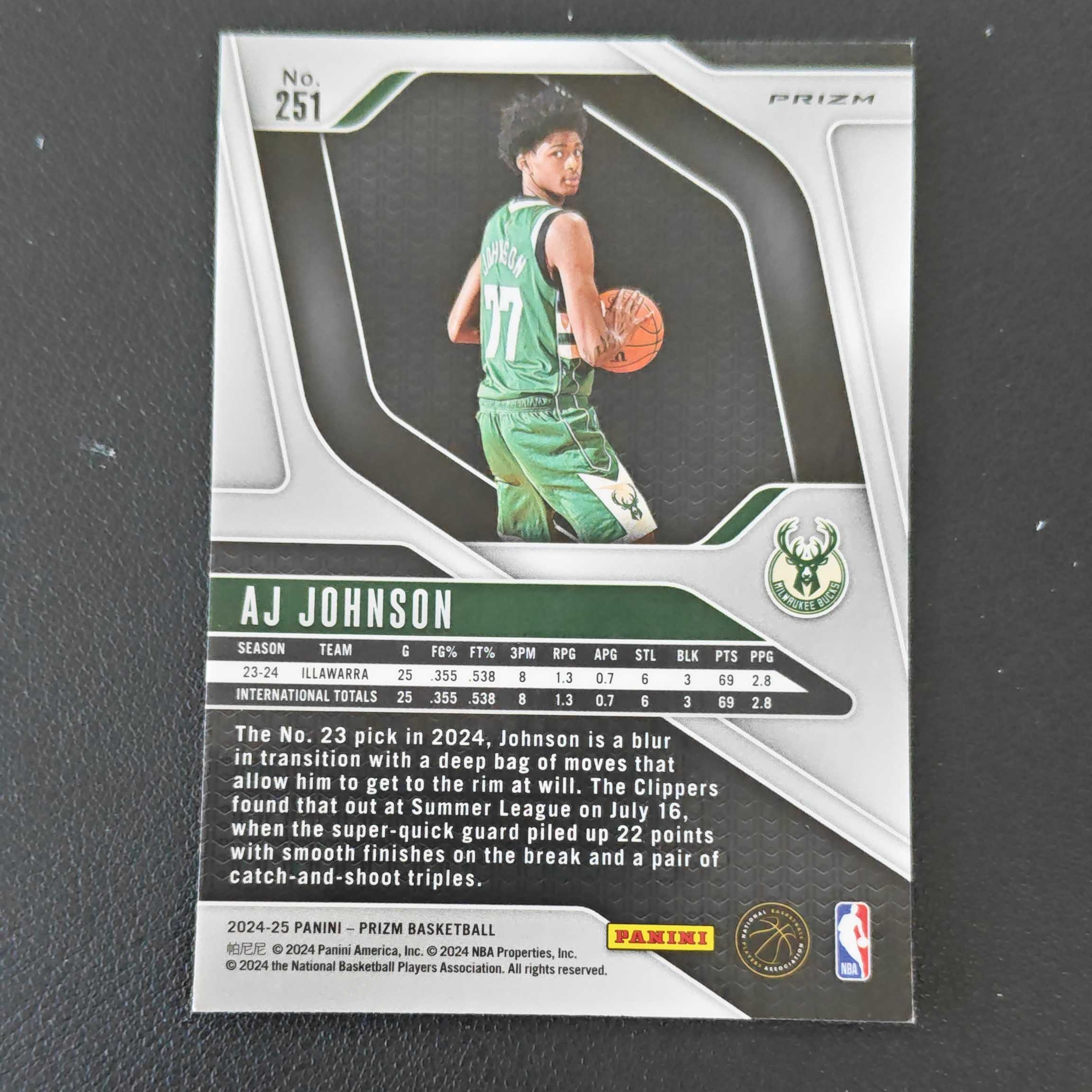 2024-25 Panini Prizm AJ Johnson RC Pz AJ 约翰逊 新秀 粉碎冰 Pink Ice 雄鹿 潜力新星
