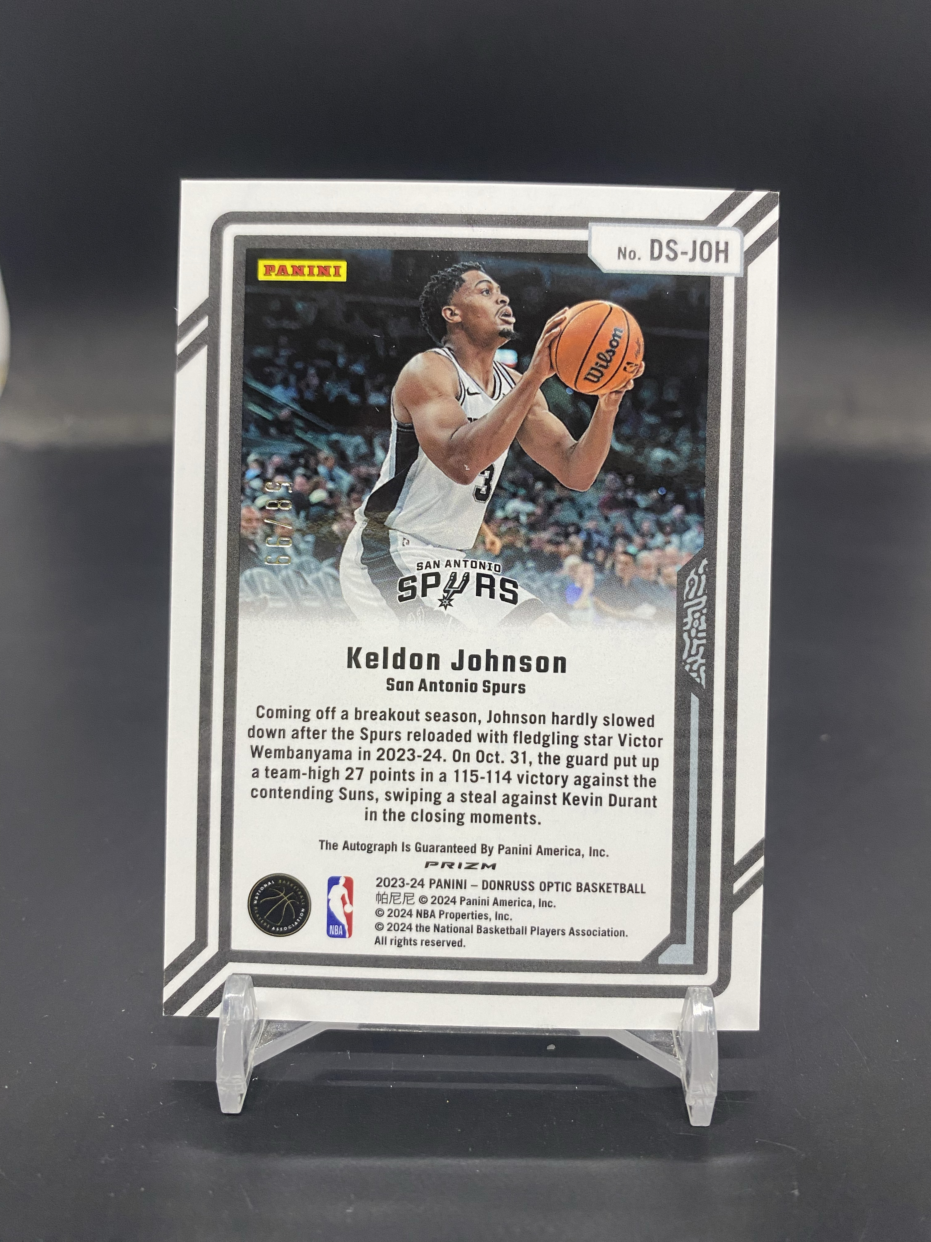 2023-24 Panini Optic Keldon Johnson 马刺 凯尔登 约翰逊 58/99编 银折 签字 签名 折射 瑕疵如图AY-07「80」