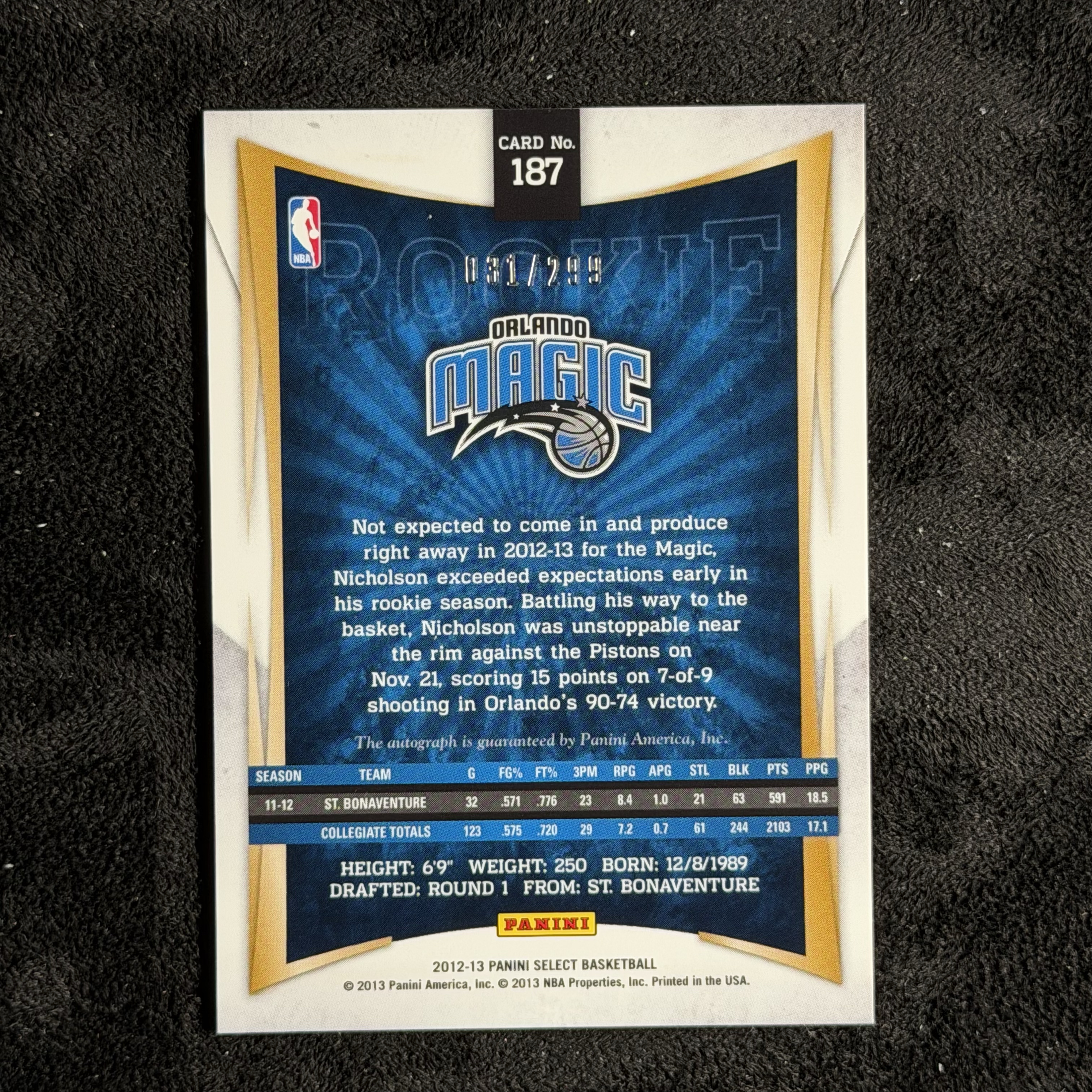 2012-13 Panini Select Andrew Nicholson 【飞飞代卖】魔术 安德鲁·尼科尔森 贴签 299编 专收必备【yc】