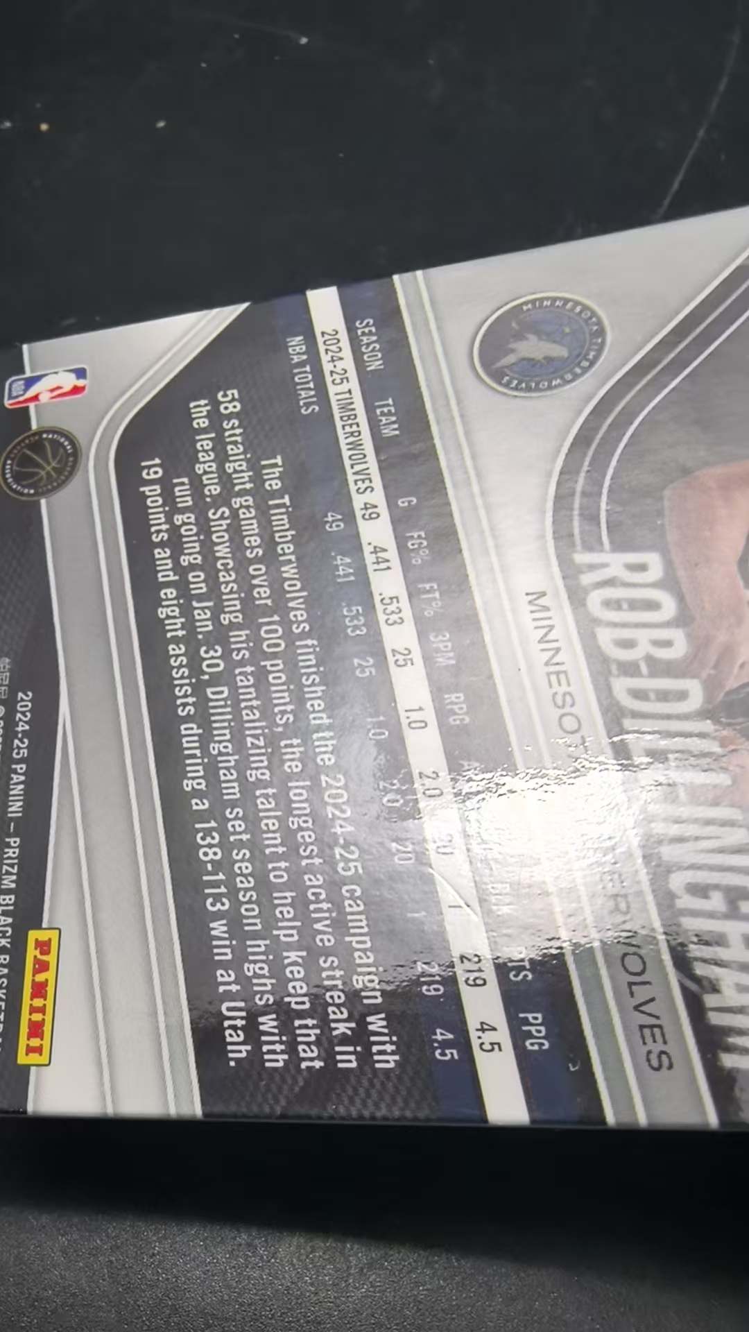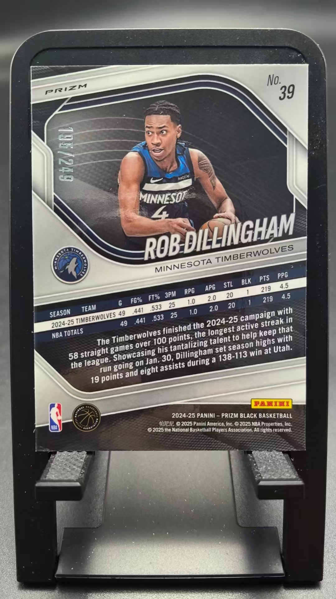 2024-25 Panini Prizm Black Rob Dillingham RC 【EC】PZ 新秀 森林狼 罗伯特 迪林厄姆 195/249编 折射 银瀑布折 瑕疵如图 泽昊52