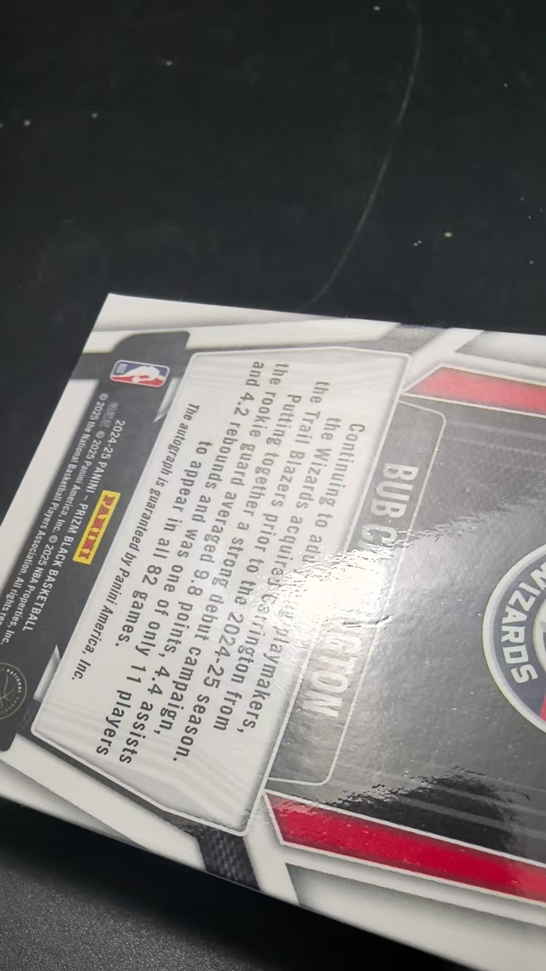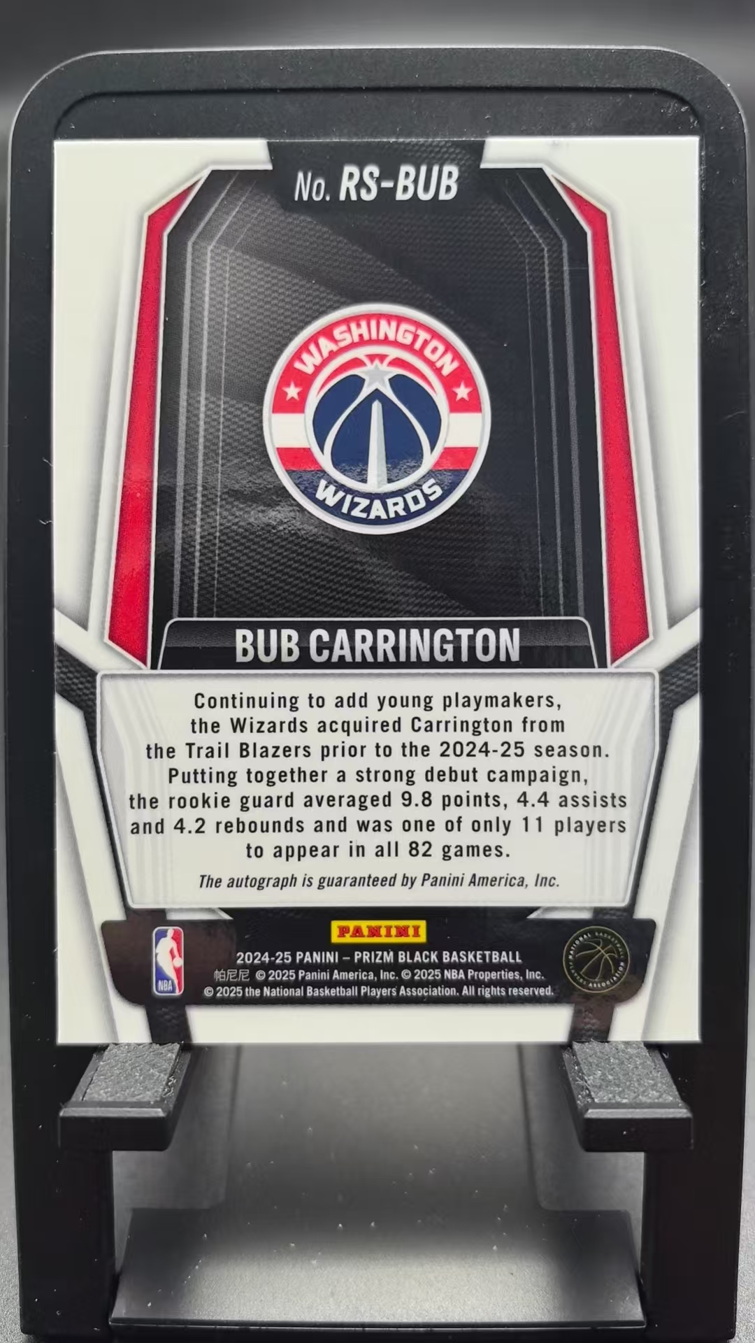 2024-25 Panini Prizm Black Bub Carrington RC 【EC】PZ 新秀 奇才 巴伯 卡林顿 卡灵顿 签字 瑕疵如图 泽昊52