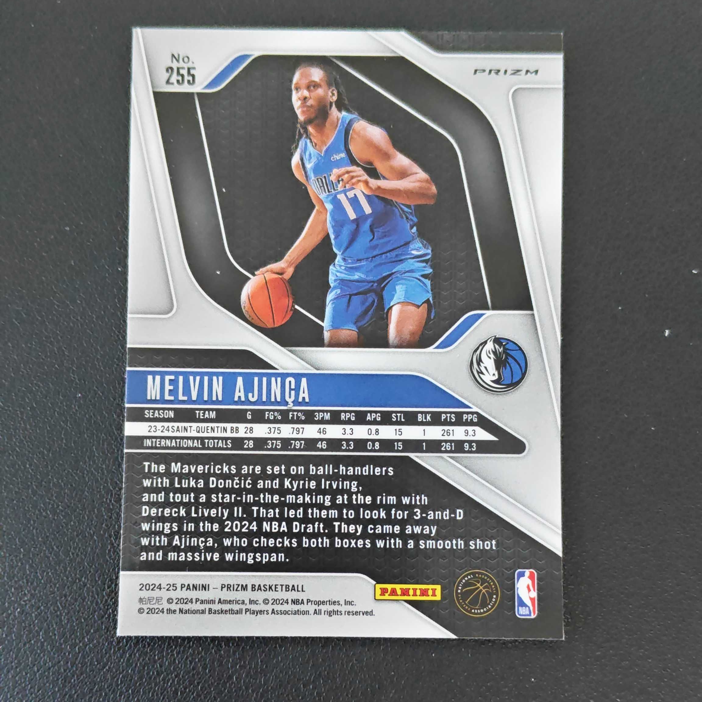 2024-25 Panini Prizm Melvin Ajinca RC 独行侠 梅尔文 阿金萨 PZ 粉碎冰折 新秀 RC 未来可期 卡品如图