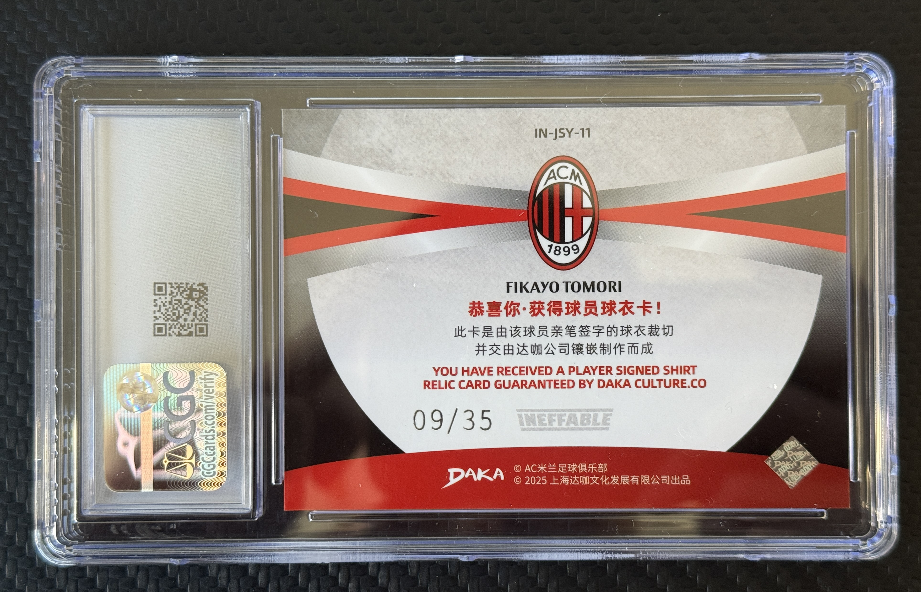 2025 DAKA AC米兰队盒 Fikayo Tomori 【包来拍卖】达咖 托莫里 9/35编 低编 红平行 物料 球衣切割 CGC8.5 评级卡 卡品如图 叉叉
