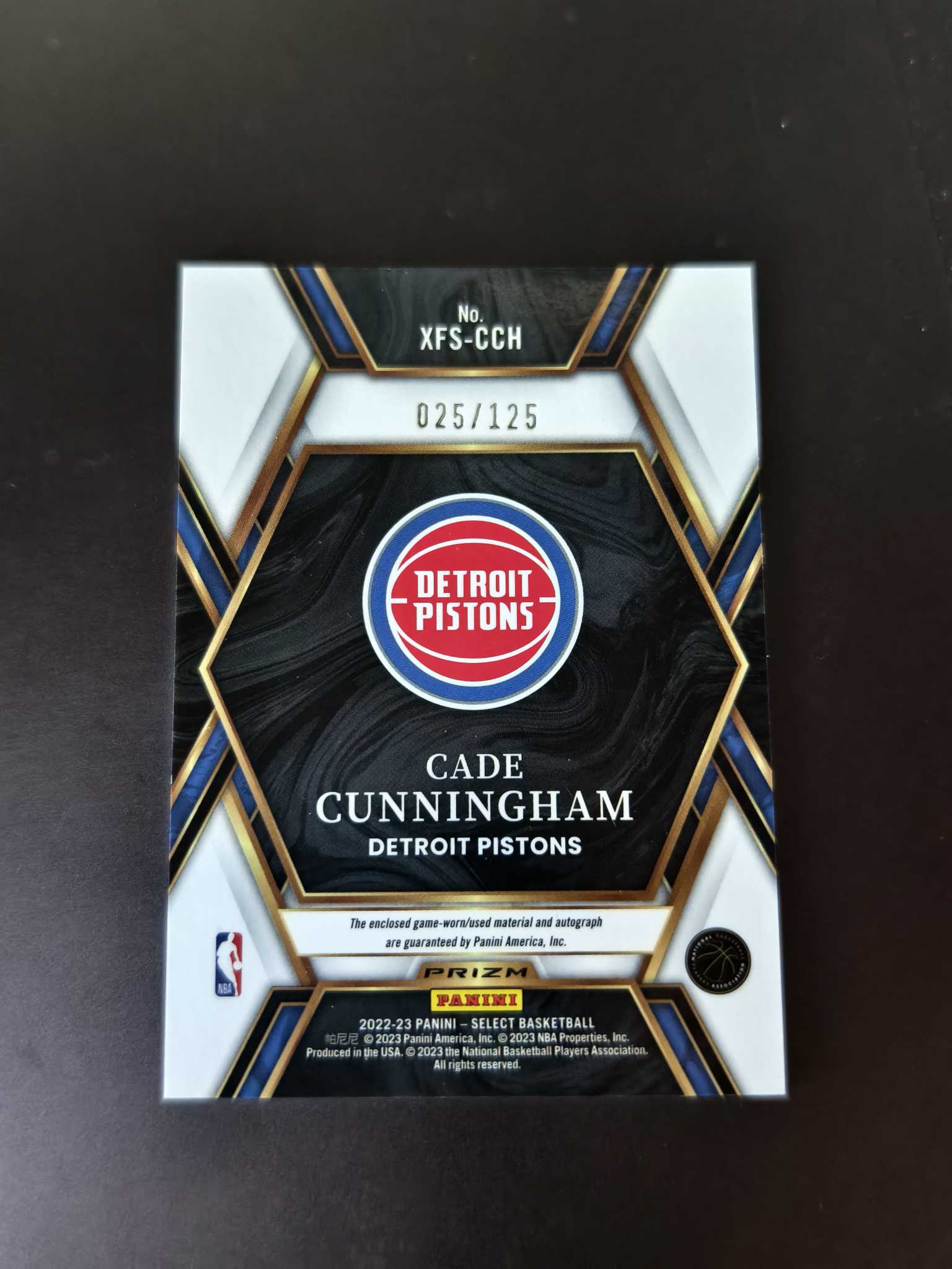 2022-23 Panini Select Cade Cunningham 活塞 新秀次年 凯德坎宁安 /125编 银折 折射 JA 签字 小窗切割亲穿球衣 卡品如图