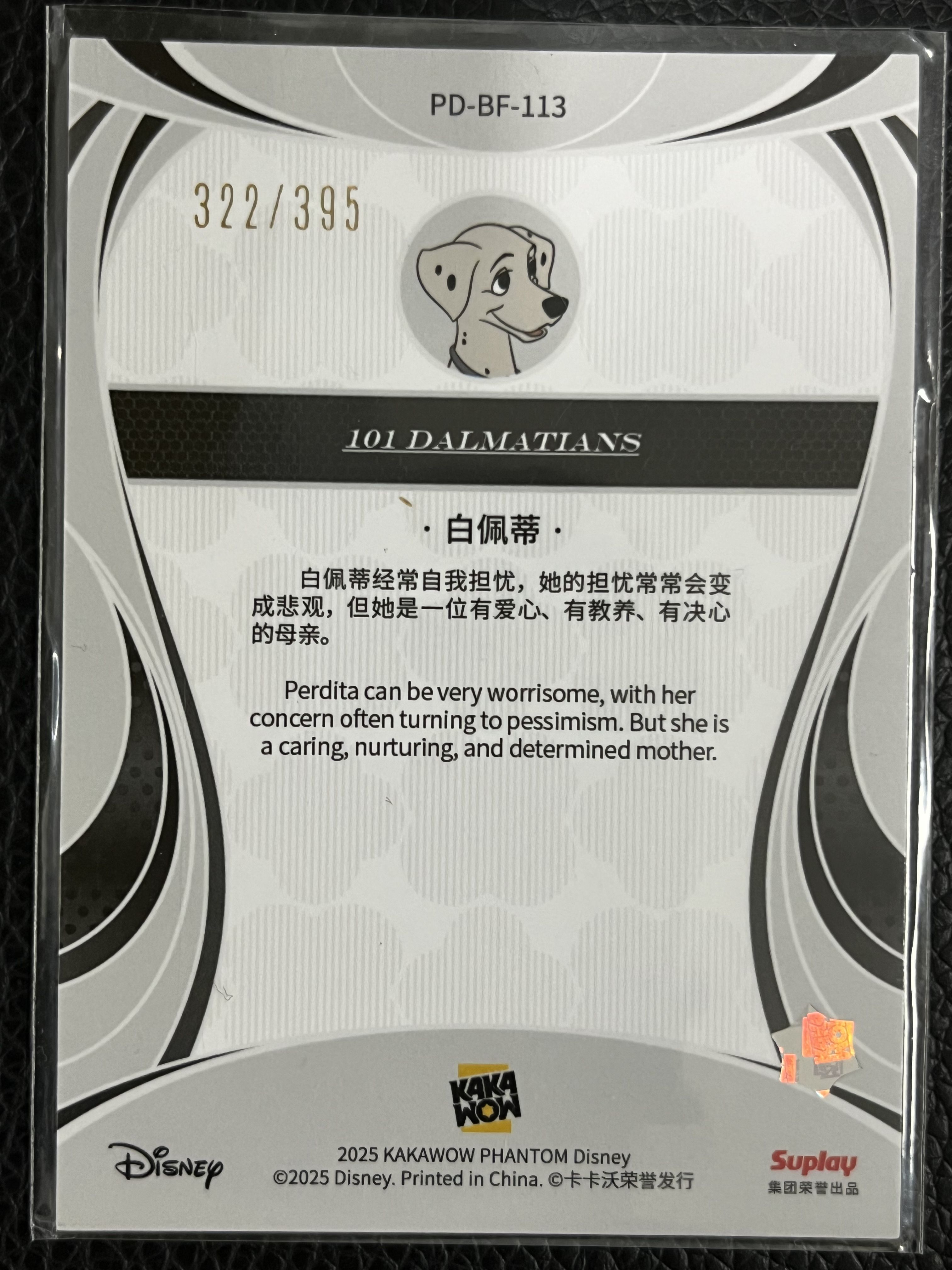卡卡沃 2025 KAKAWOW PHANTOM 迪士尼系列收藏卡 基础卡-四叶草折 JKX白(19A)322/395编 卡号113 白佩蒂 Perdita