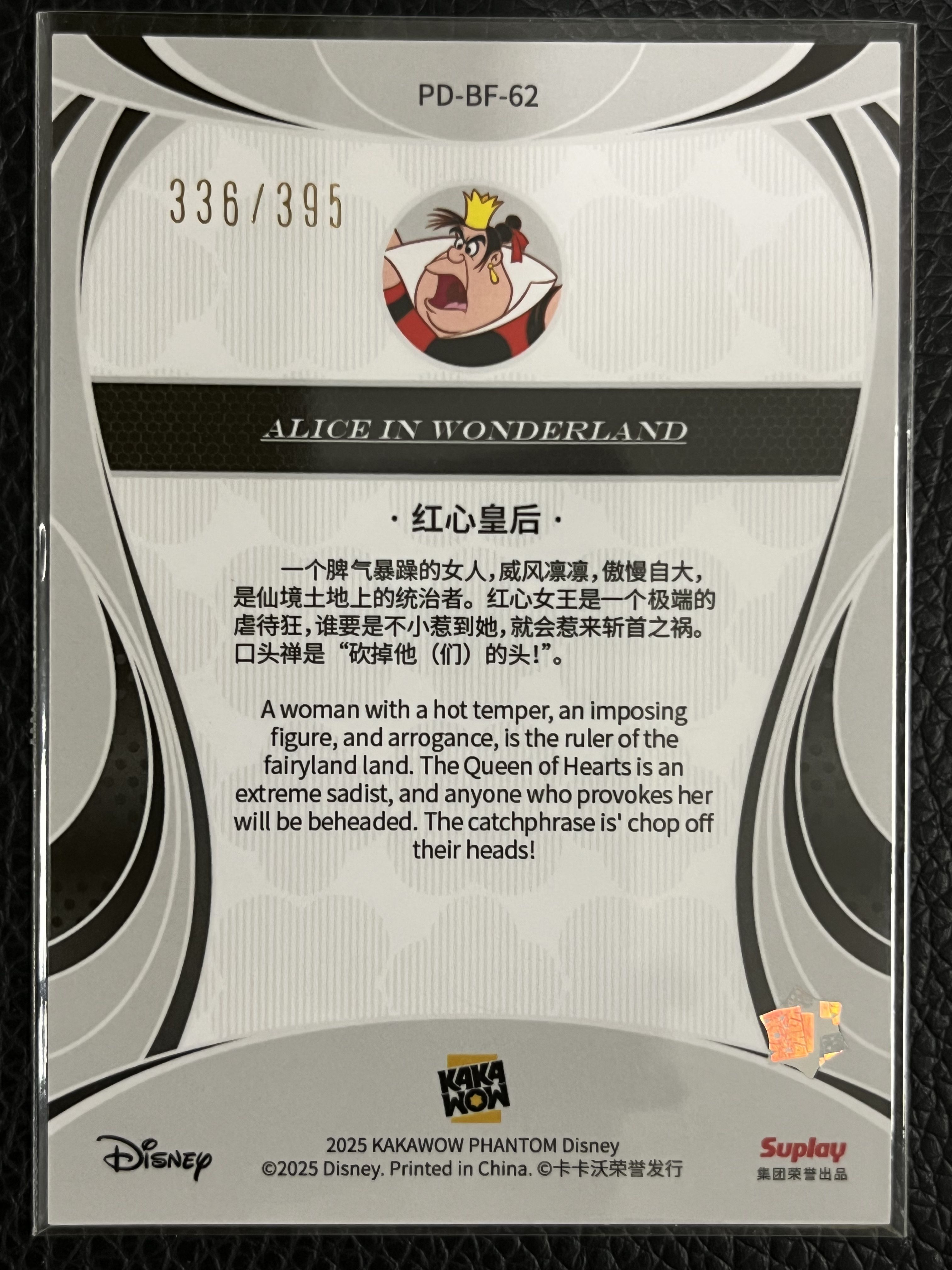 卡卡沃 2025 KAKAWOW PHANTOM 迪士尼系列收藏卡 基础卡-四叶草折 JKX白(19A)336/395编 卡号62 红心皇后 Queen of Hearts